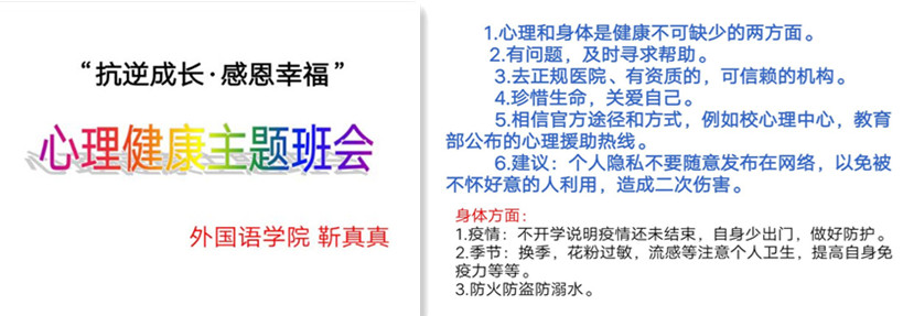 (通讯员 靳真真)为进一步推进《太阳成集团tyc122cc心理育人实施方案》在公司落地落实,引导老员工关爱自我,关注心理问题,提高老员工心理健康水平和心理健康素质,根据公司老员工心理健康教育指导中心《关于开展公司第十四届老员工“5·25”心理健康教育宣传月活动的通知》,5月份公司积极组织辅导员开展以“抗逆成长 感恩幸福”为主题的云班会,全院员工认真配合并积极参与。