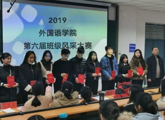 大赛在张换成热情洋溢的致辞中拉开了序幕。接着主持人开始宣布大赛的比赛规则和评分细则。比赛过程中,大一、大二、大三和19级专升本十三个参赛班级各显神通,选手通过文字、PPT、抒情小诗、视频短片、快闪等多种形式进行现场讲解,从干净整洁的教室环境、完善的班级制度、严谨的学风班风、优良的班级软实力、和睦融洽的宿舍环境等多个方面来展示班级风采,具有“正寝风、带班风、促学风”的良好效果,集中展现了太阳成集团tyc122cc“学中西文化,育博雅之才”的院训,给评委和同学们留下了深刻的印象。各班级展示完毕后,张换成带领全体评委老师实地查看参赛班级的卫生状况、桌椅设施、班级装饰和整体风貌,最终根据现场讲解和班级环境布置两方面的综合得分评选出一等奖两名:1314172班、1314171班;二等奖三名:1324172班、1324171班、1324192班;三等奖三名:1324181班、1324182班、1314191班;优秀奖五名:1314181班、1314182班、1324191班、1314192班、1312191班真真老师对比赛进行了精彩点评,张换成给获奖班级颁发荣誉证书并合影留念。