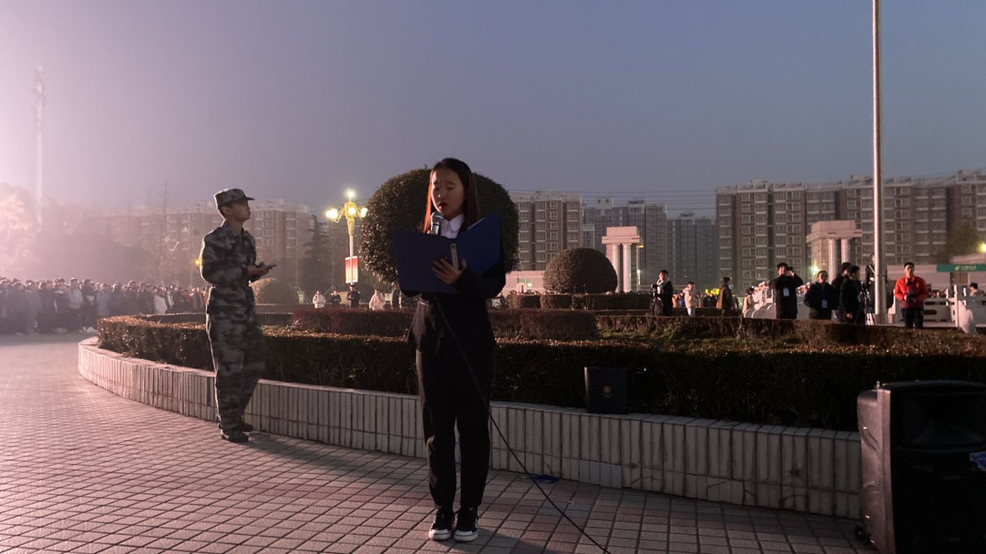 升旗仪式开始前,公司团员代表六点半在国旗广场站列整齐。七点,主持人宣布升旗仪式正式开始,在全体师生的注目礼下,英姿飒爽的国旗护卫队队员们护送鲜艳的五星红旗进场。礼行完毕,伴随着庄严的《中华人民共和国国歌》,五星红旗冉冉升起,迎风飘扬。在场的每一个人向国旗行注目礼,深怀对祖国无限的热爱和崇高的敬意。接着,2019级法公司团员代表进行国旗下演讲,表达了对万米接力运动会的期望和对运动员的鼓励。最后,全体人员进行了庄严宣誓。升旗仪式结束后,全体人员有序退场。