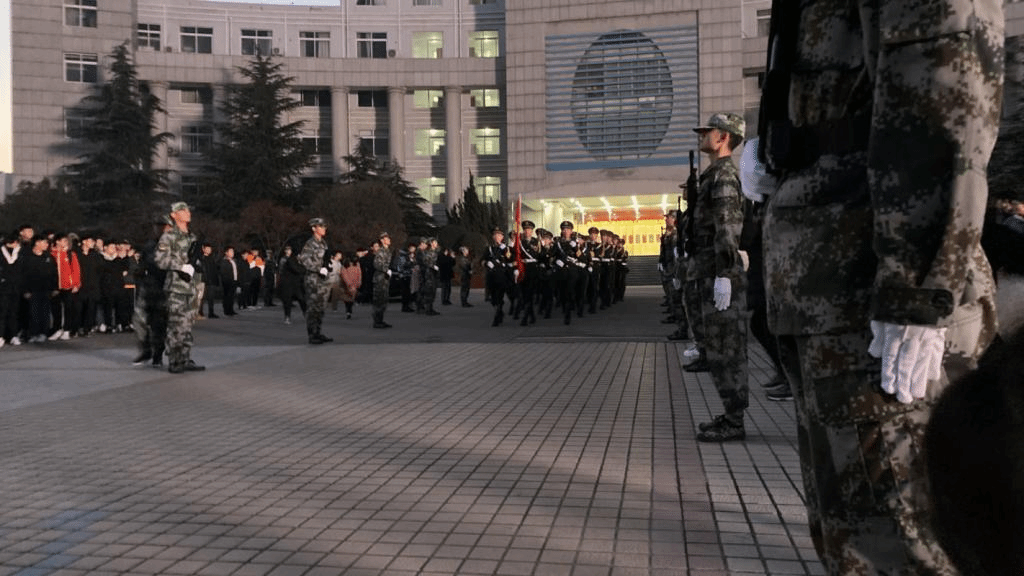 (外国语员工参加升旗仪式)