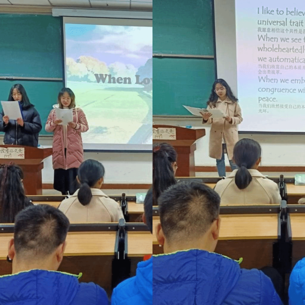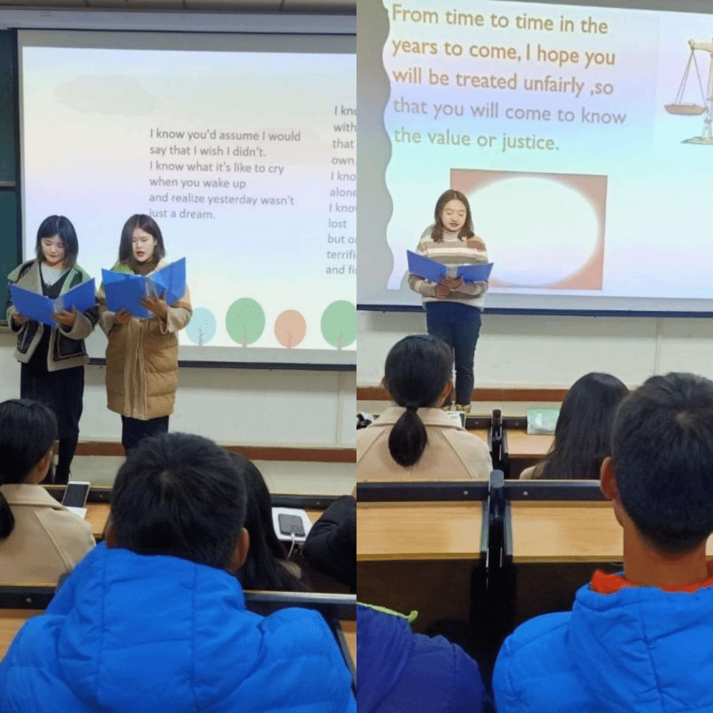 比赛之前,参赛选手根据自己所选择的作品认真练习发音;比赛开始,参赛选手根据抽签顺序上台朗读,同时评委根据参赛选手朗读的主题内容、语言表达、朗读技巧、肢体动作四个方面依次进行打分。最后,刘潆璠学姐、陈钰文学姐和王懿学姐对此次比赛进行了点评,既指出了优点和长处,也指出了缺点和不足,给参赛选手提出了切实可行的改进意见。最终倪邓红弘、林颖和黄雅婷三位同学进入决赛,本次朗读比赛初赛到此圆满结束。