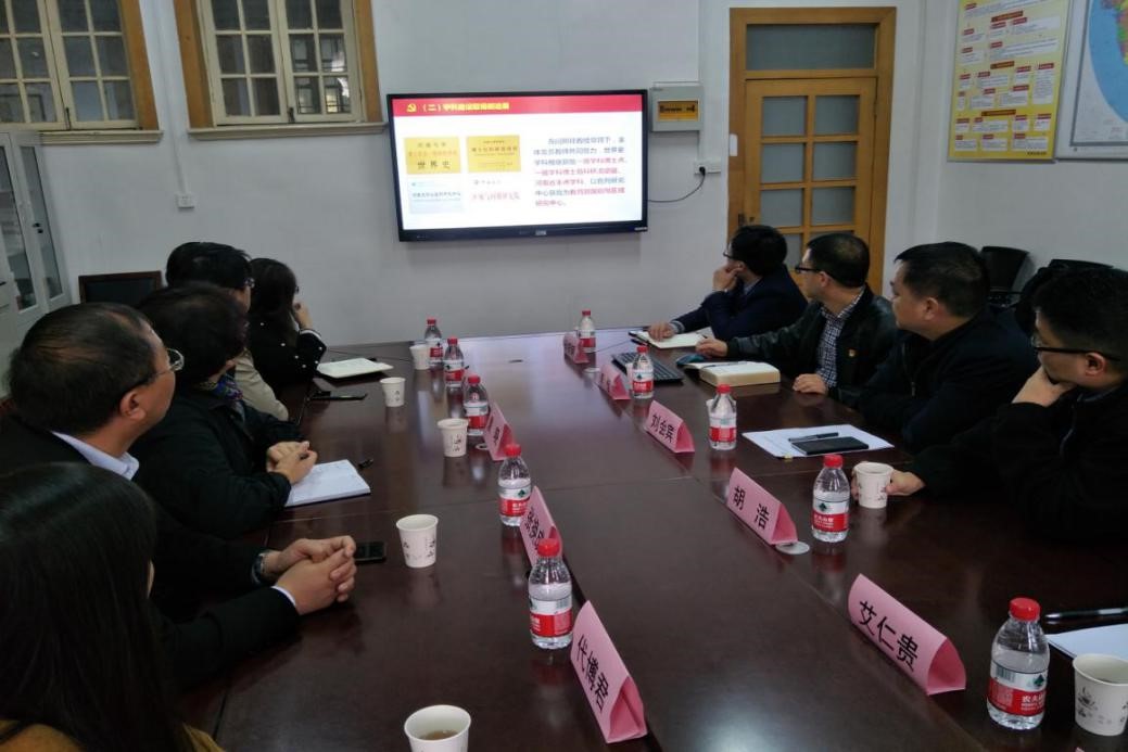 座谈交流会在热烈融洽的氛围中开始,李恒教授主要从世界史在全国党建工作样板支部的创建探索阶段、创建成效和创建设想三个方面进行了介绍讲解。在创建探索阶段,主要讲解了“五抓五提升”:抓机构设置,提升支部组织力;抓保障建设,提升支部服务力;抓阵地建设,提升支部凝聚力;抓组织生活,提升支部影响力;抓日常管理,提升支部战斗力;信息平台建设。在创建成效方面主要讲了:传承中国历史优秀传统文化,坚定文化自信和理论自信;支部国家社科基金累计立项17项。创建样板支部的设想是落实“不忘初心、牢记使命”主题教育;落实立德树人根本任务;支部的活动最终为师生解决了多少最急最忧最盼的民生问题;支部建设突出政治性、原则性、时代性、战斗性;坚持理论学习,用党的科学理论武装头脑;注重考察交流,运用教育平台,发挥好宣传示范引领作用;组织开展课堂思政、社会实践、精准扶贫、山区支教、志愿服务等相关活动,在活动中解决实际问题。交流会上双方还就支部建设方面的其它相关问题进行了沟通和交流。