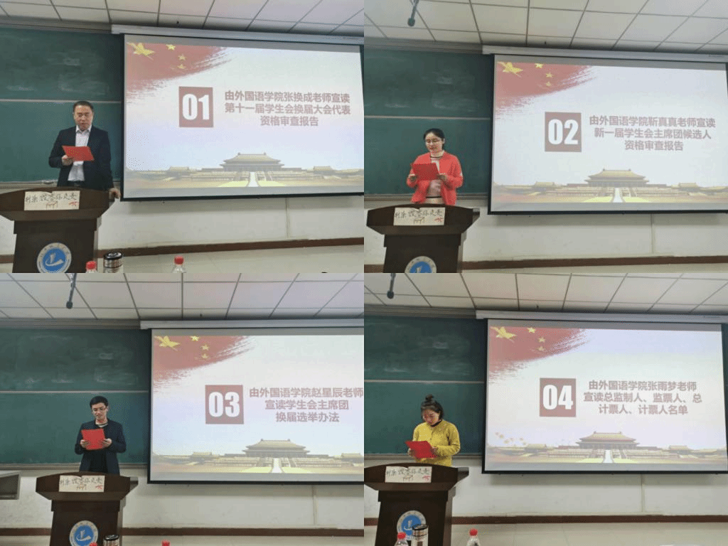 大会在主持人的致辞中拉开序幕。首先是张换成老师宣读“第十一届员工会换届大会代表资格审查报告”,然后是程燕霞老师宣读“新一届员工会主席团候选人资格审查报告”,接着是赵星辰老师宣读“员工会主席力团换届选举方法”,最后是张雨梦老师宣读“总监制人、监票人、总计票人、计票人名单”。宣读完毕之后,各候选人开始竞选演讲,21名新一届主席团候选人依次上台发表演说。竞选演讲结束后,各代表秉承民主、公平、公正的原则进行投票选举。最后,大会在主持人的致辞中拉下了闭幕,本次换届大会圆满落幕。