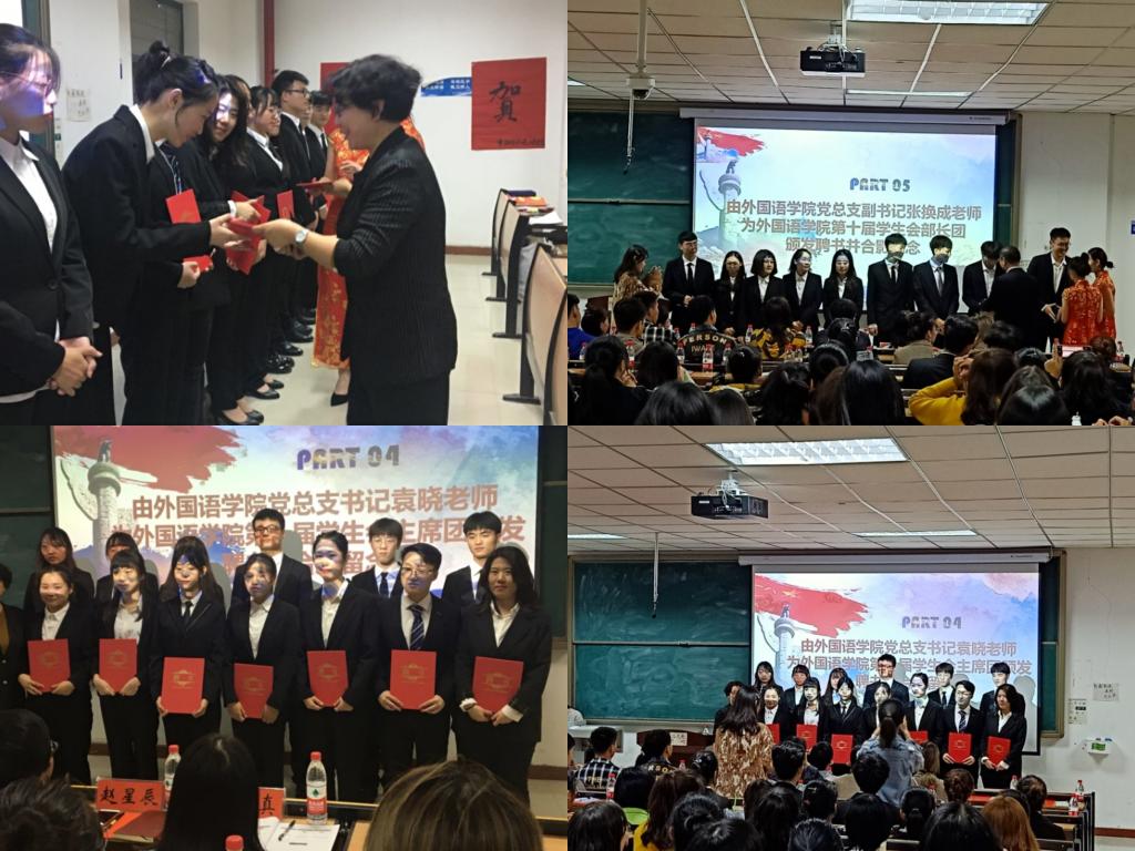 此次大会一共有八项议程。第一项全体师生起立,共同奏唱国歌。接着袁晓致开幕词宣布成立大会开始,然后由第十届员工会主席张秋梦作为第十届员工会代表做工作报告。而后进行第四项和第五项,袁晓为第十届员工会主席、团总支副书记及各副主席颁发聘书并合影留念,张换成为第十届员工会各部长颁发聘书并合影留念。随后进行第六项和第七项,田果果老师宣读第十一届员工会主席团,主任团名单,并进行新老主席团交接仪式,新一届员工会主席霍丞丞做就职报告。大会最后一项,张换成致闭幕词,大会圆满结束。