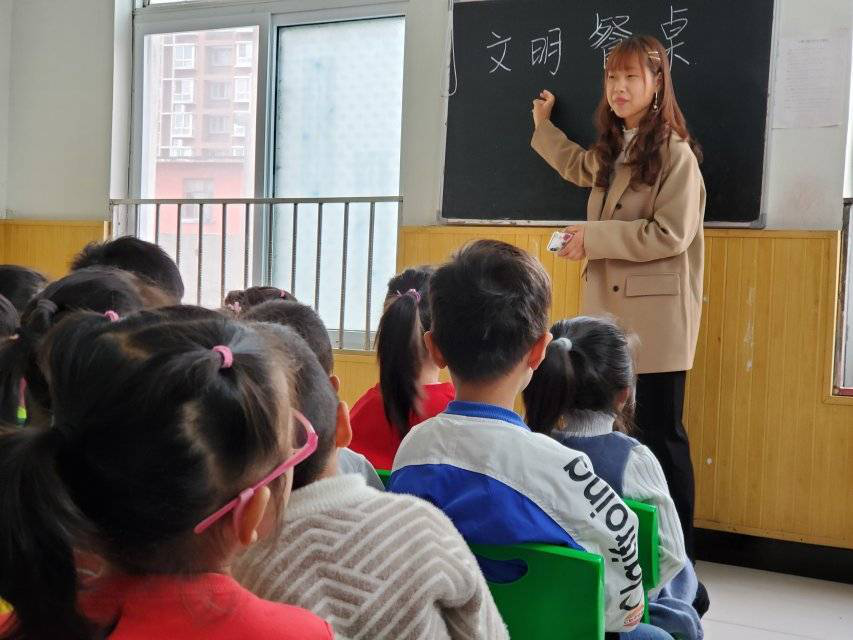 第一个主题是文明餐桌。其中文明餐桌讲解的内容包括:吃饭时不要大声说话、不要大声咀嚼食物,不要敲餐具,不要大声呼喊服务员等;了解每一种餐具的用法,筷子不要乱放;不要浪费食物努力做到光盘行动。