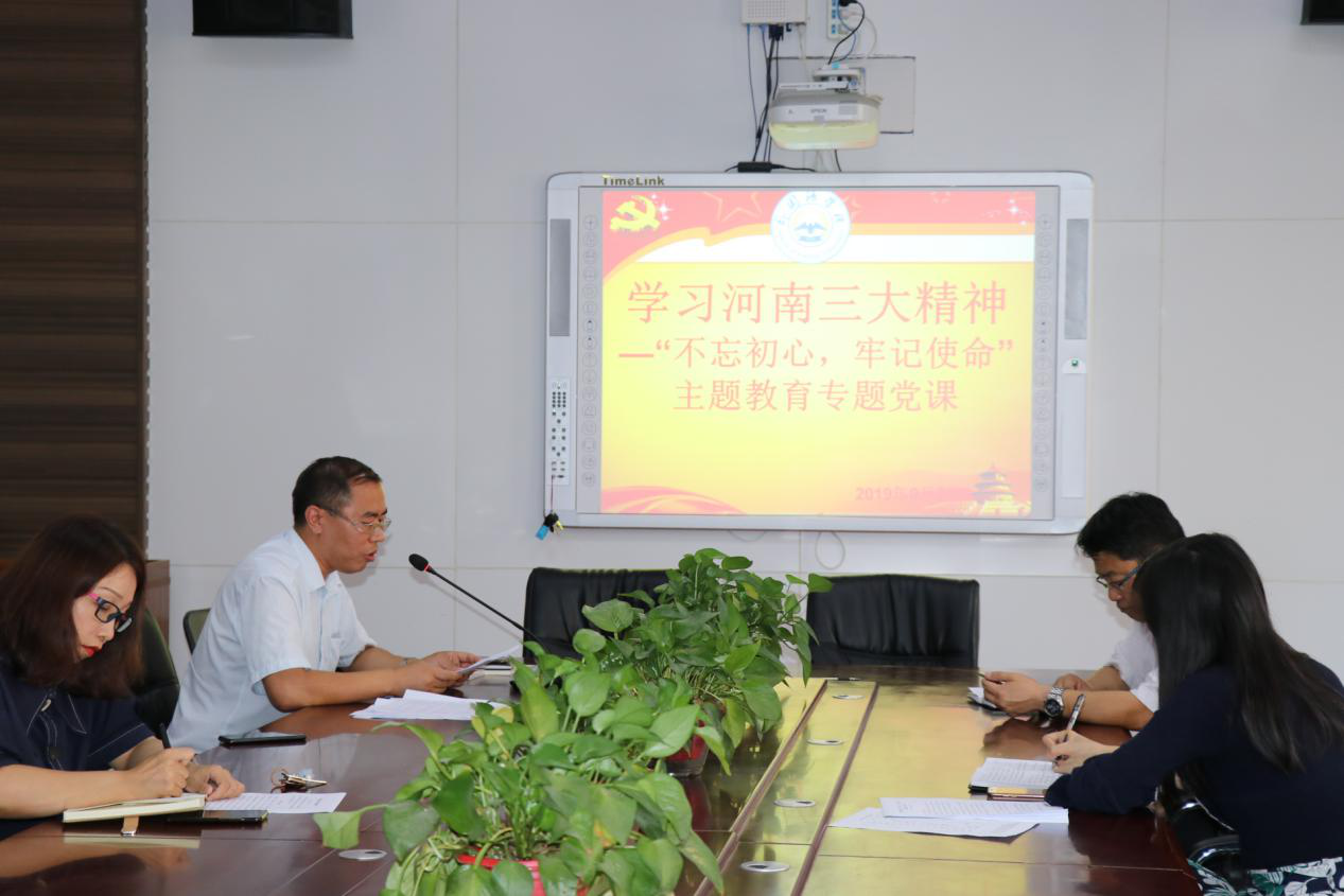 (通讯员 赵星辰)根据中央“不忘初心、牢记使命”主题教育领导小组印发《关于开展第二批“不忘初心、牢记使命”主题教育的指导意见》和公司“不忘初心、牢记使命”主题教育工作提示,924日下午公司党总支在1号教学楼306会议室开展专题党课,公司党总支副书记张换成、副经理秦小锋、教工第一党支部书记王莉、员工第二党支部书记田果果和第一党支部书记赵星辰参加党课,各支部全体师生党员上党课。为学习贯彻落实习近平视察河南重要讲话精神,专题党课内容为:学习焦裕禄精神、红旗渠精神、大别山精神三大红色精神。张换成负责讲专题党课。