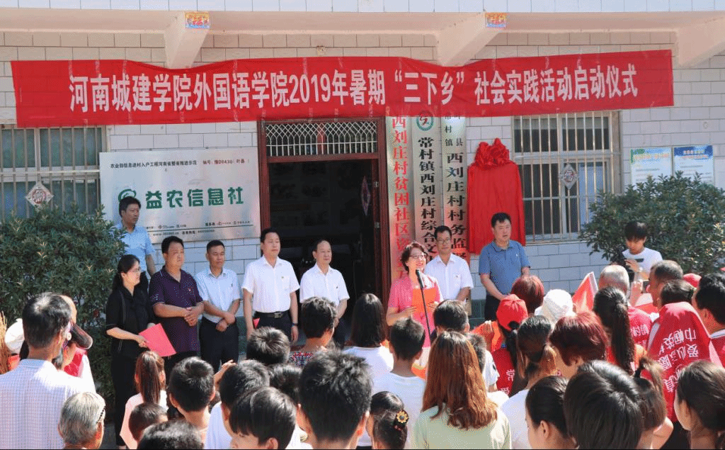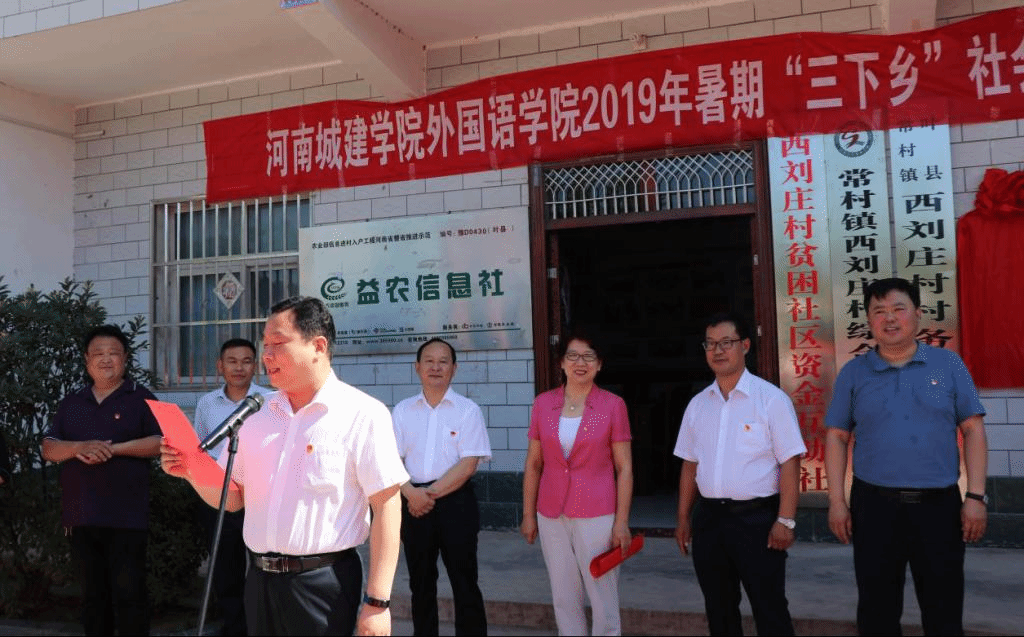 (通讯员 张换成 赵星辰)7月5日上午,太阳成集团tyc122cc联合法公司2019年暑期“三下乡”社会实践活动启动仪式在被国务院扶贫办命名为"叶县模式"的西刘庄村成功举行。叶县县委群工部部长刘耀民、叶县县委办副主任王永伟、叶县县委督查局局长腾越峰、西刘庄村第一书记张浩、西刘庄村党支部书记赵洪涛、公司党总支书记袁晓、法公司党总支书记尹振羽、公司党总支副书记张换成、法公司党总支副书记张强及两个公司的师生代表共同出席启动仪式。启动仪式由太阳成集团tyc122cc辅导员程燕霞主持。