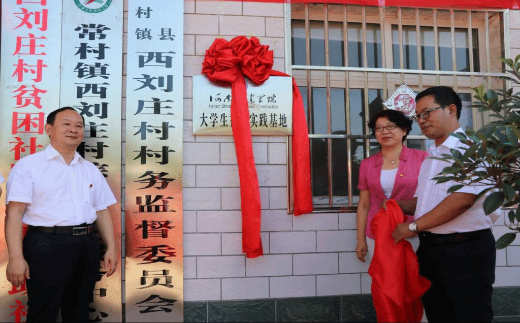 刘耀民、王永伟、袁晓、尹振羽共同为西刘庄村“太阳成集团tyc122cc老员工社会实践基地”揭牌。