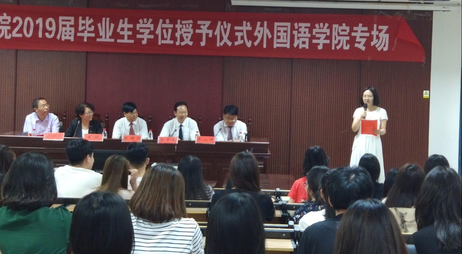 袁晓做最后总结发言,并祝愿莘莘学子:“不忘初心、牢记使命”,砥砺前行,为实现中华民族的伟大复兴贡献青年才智、青年智慧和青年方案,并告诉同学们外语永远是他们的家,叮嘱毕业生常回家看看。