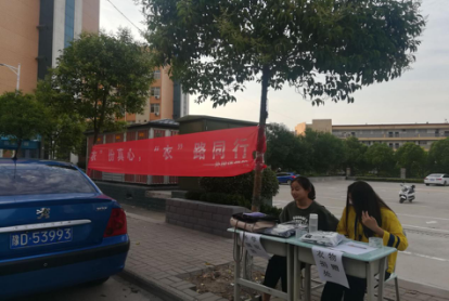 活动开始,志愿者负责在小广场悬挂横幅,摆放桌椅,志愿者积极进行宣传,让过往的同学了解此次活动的目的,并且激发人们对留守儿童的关注之情。宣传标语旁放的装衣物的箱子,捐赠者可以把要捐的衣物放置在里面。院青年志愿者负责记录捐赠者的相关信息包括姓名,性别,电话,捐赠的物品,传递爱心,感动他人。活动结束,装衣物的箱子已经放置了很多志愿者捐赠的衣物。