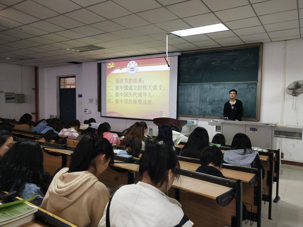 班会课上,辅导员介绍了国庆节的来历和重要历史意义;新中国的成立对于中华民族和全世界人民的非凡意义;新中国成立以后从毛泽东主席到习近平总书记各位国家领袖对实现中华民族的伟大复兴所作出的贡献,新中国成立之后从积贫积弱、满目疮痍、百废待兴到全面振兴、蓬勃发展、蒸蒸日上的璀璨成就。班会课通过视频和图片等多种途径,带领新时代学子感受新中国成立70周年以来所取得的翻天覆地的成就,增强员工的自豪感、自尊心和自信心,激发员工们为建设一个富强民主文明和谐美丽的社会主义现代化国家而砥砺前行、学有所成。