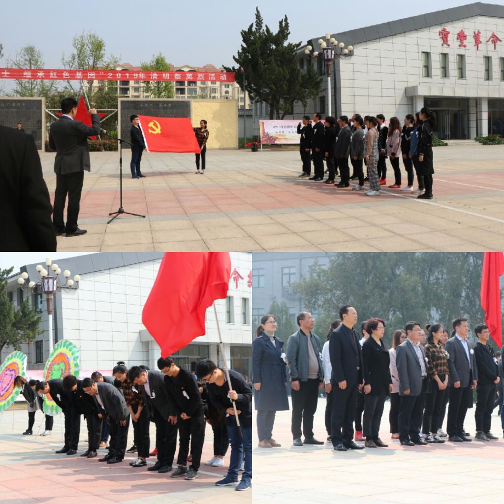 (通讯员 赵星辰)为深入贯彻落实习近平新时代中国特色社会主义思想,汲取英烈崇高的奉献和牺牲精神,凝聚起外语师生磅礴的爱国敬业力量,以砥砺前行的精神面貌喜迎新中国成立70周年,4月4日上午公司党总支前往宝丰县烈士陵园开展“传承•2019清明祭英烈”祭扫活动。公司党总支书记袁晓、经理秦平新、副书记于修涛、副经理秦小锋和部分师生党员代表参加此次活动。