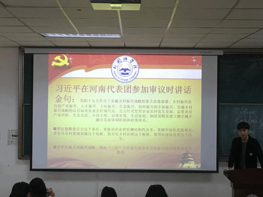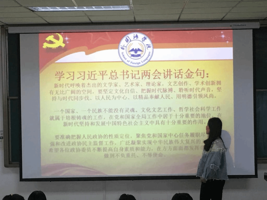 主题团日活动上主要学习了习近平总书记在全国两会上面的讲话金句,特别是习近平总书记所强调的文学艺术创造、哲学社会科学研究需要搞清楚为谁创作、为谁立言的问题,与英语和翻译专业同学的学习息息相关;学习了李克强总理在十三届全国人大二次会议上作的《政府工作报告》精神,知晓了“稳定和扩大就业、鼓励更多社会主体创新创业、发展更加公平更有质量的教育”的政府工作任务,新时代老员工备受党的政策鼓舞;学习了相关专家、学者对于全国两会精神的解读文章;观看了相关会议视频。广大团员纷纷表示:此次学习让团员们了解党的理论、政策、路线、方针,让两会精神深入人心。
