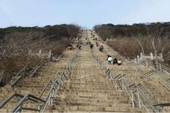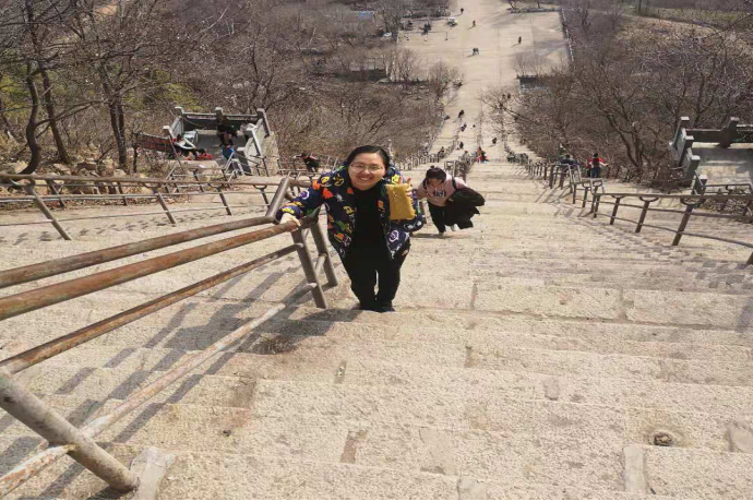 动员讲话结束之后,爬山活动随着一声哨响开始,全体教师争先恐后向山顶出发。爬山途中,有的女教师拾级而上,奋勇攀爬,一鼓作气;有的女教师闲庭信步,步伐轻盈,放松自我;有的女教师带着自己的孩子,开启大手牵小手的亲子活动。全体教师时而合影留念,时而停步眺望,欣赏着山间美景,呼吸着大自然的清新空气,一步一个台阶,不到半小时的时间,大家先后登上了山顶。