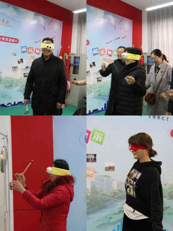 裁判员杨旭宣布比赛的流程和规则,公司党总支书记袁晓宣布活动开始。第一个趣味活动是吹气球,限时一分钟多者胜出,四十多名教师积极参与,最终柳小花获得该组比赛第一名;第二个活动是瞎子敲锣,参与者蒙住眼睛之后,原地转五圈然后向前走五米敲锣,最终李华老师获得该组比赛第一名;第三个活动是筷子端乒乓球,参与者用筷子端着乒乓球,从桌子的南边走到北边然后放进盆中,最终代博君老师获得该组比赛第一名;第四个活动是投乒乓球,参与者站在五米之外,将乒乓球投进桶中,最终马秋鸽获得该组比赛的第一名;第五个活动是踢毽子,参与者在一分钟之内累计踢毽子,最终郭宇飞老师获得该组比赛第一名。趣味活动在轻松愉快和谐的氛围中结束。