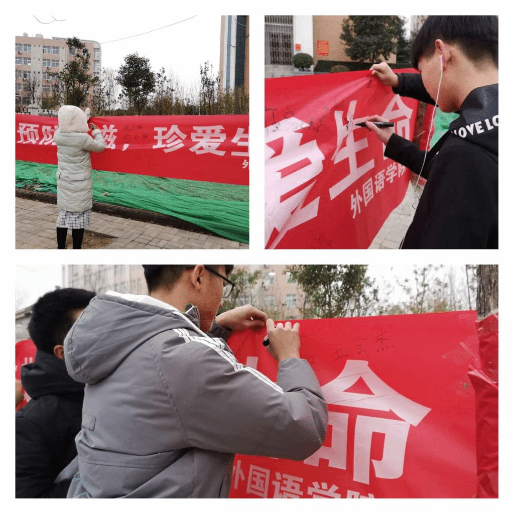 活动开始之前,志愿者在文苑小广场旁边悬挂本次艾滋病宣传活动的横幅,并准备好预防艾滋病的健康知识宣传页和黑色签字笔。活动开始后,志愿者积极地向过往的同学发放有关艾滋病的宣传页,内容主要包括预防措施、传染途径、对于个人和家庭的危害以及健康的生活方式,同学们看完宣传页之后积极地在横幅上签字,立志远离艾滋、预防艾滋。活动结束的时候,有同学感言:原来艾滋病距离我们并不遥远,自己需要养成合理、健康、卫生的生活方式,避免悲剧在自己和周围同学身上发生。