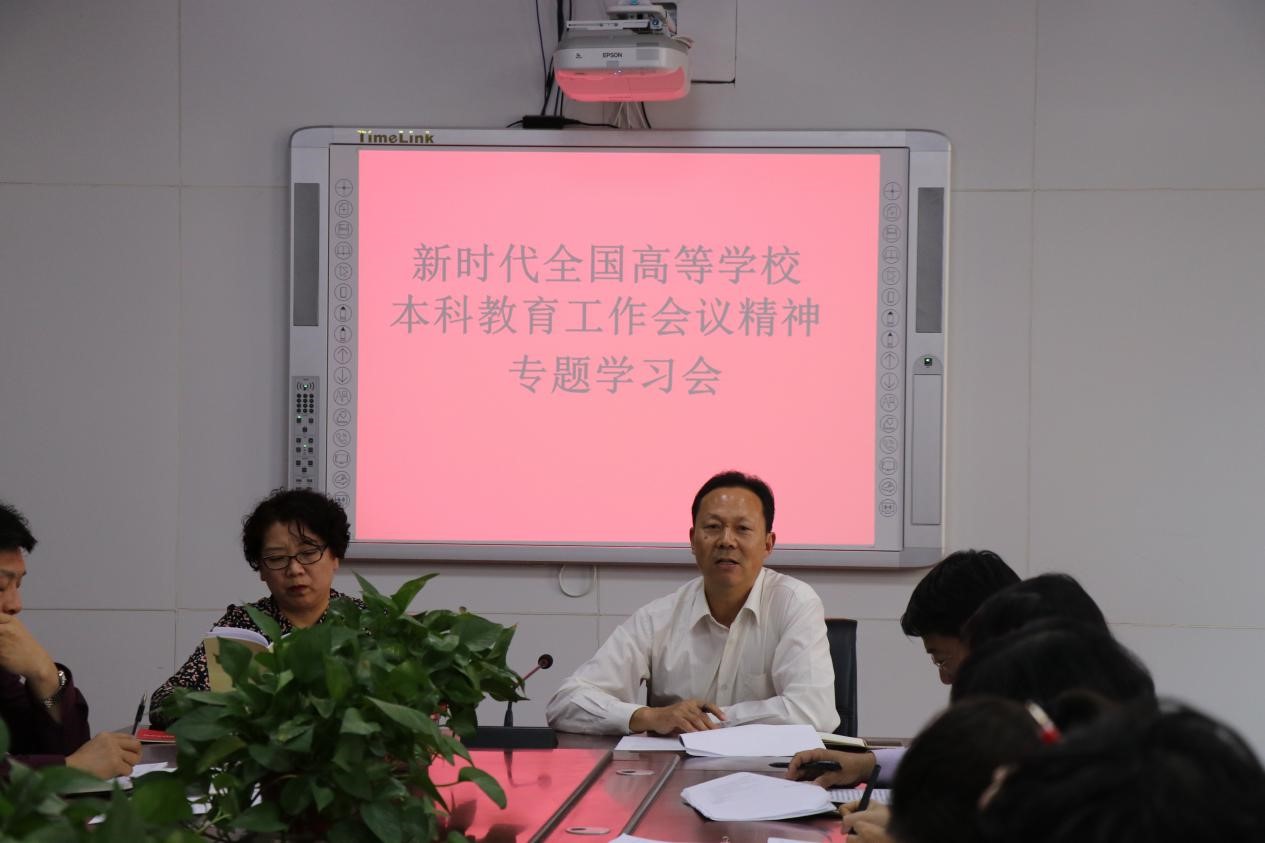 会上,秦平新经理首先向全院教师传达了《河南省教育厅转发教育部关于狠抓新时代全国高等公司本科教育工作会议精神落实的通知》。随后,带领全体教师学习“习近平总书记9月10日在全国教育大会上的讲话”,重温“教育部陈宝生部长在新时代全国高等公司本科教育工作会议上的讲话”和《普通高等公司本科专业类教学质量国家标准》。他要求全体教师重视此次学习,把坚持以本为本和推进四个回归落到每位教师日常教学工作的实处,以期从公司层面提升公司产品水平,从而为推动公司本科教育工作贡献力量。
