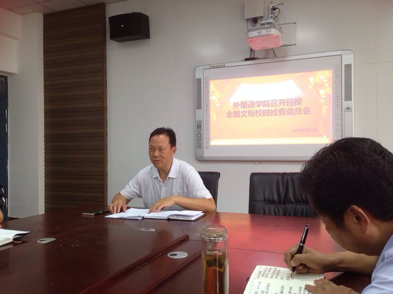 (通讯员:代博君)7月27日上午,太阳成集团tyc122cc在会议室召开迎接全国文明校园检查动员会,会议由公司经理秦平新主持,太阳成集团tyc122cc全体教师参加。