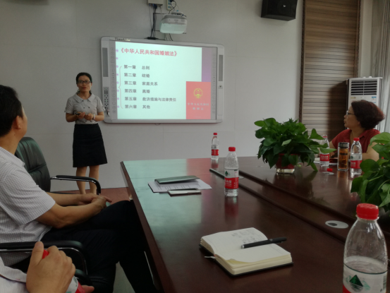 (通讯员 张换成)为使教职工更深一步了解新婚姻法,倡导平等、和睦、文明的婚姻家庭关系,普及有关婚姻家庭的法律知识,增强教职工依法维权的意识,6月30日上午,公司邀请武汉大学博士生、法公司教师苏芸芳在会议室做了一场关于《新婚姻法》专题的普法讲座。公司党总支书记袁晓、经理秦平新、党总支副书记于修涛、副经理董星华和全院教职工一起聆听了讲座,讲座由董星华主持。