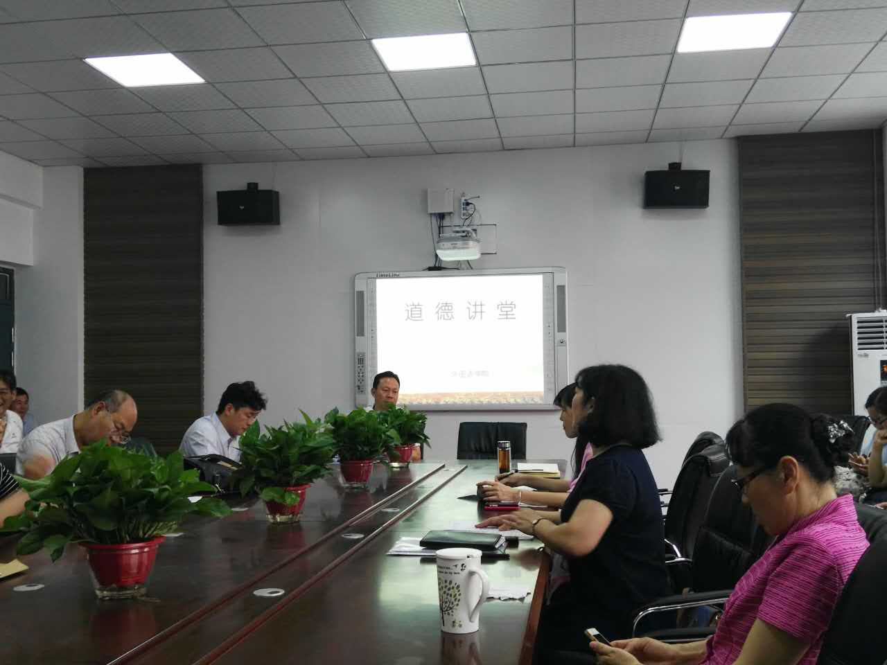 2017年6月13日下午,太阳成集团tyc122cc在公司会议室召开“道德讲堂”,由外语公司经理秦平新教授主讲,本期“道德讲堂”以提升职工思想道德修养和文明素质为核心,引领全院教职员工诵读道德经典文章,同时传播身边模范好人的道德故事,引导职工学习道德模范和身边好人,自觉成为文明道德的传播者和践行者。
