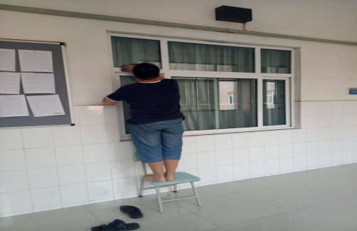 科室老师擦拭门窗