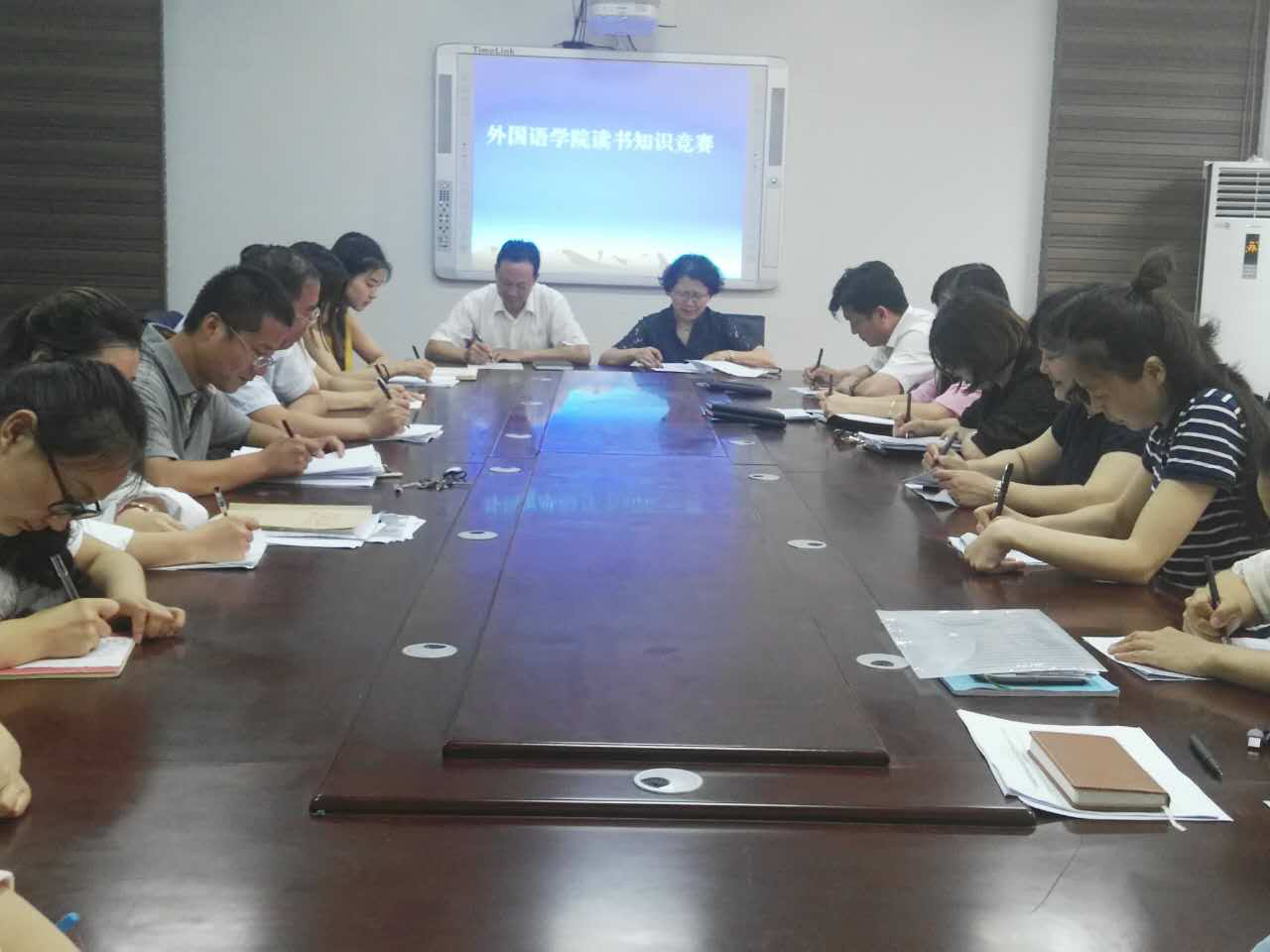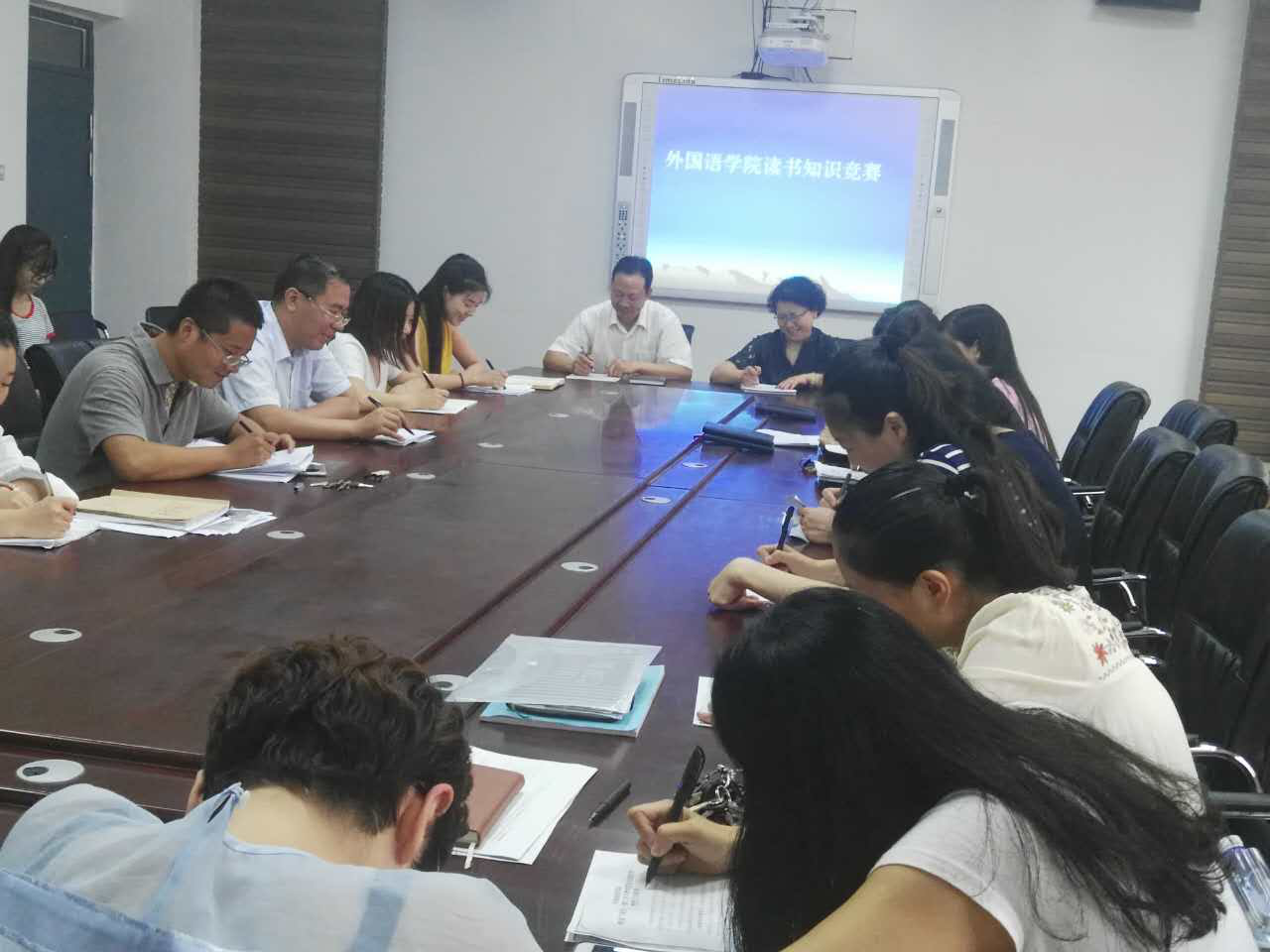 为了培养全体教师员工好读书,读好书的良好习惯。2017年6月12日在公司会议室举行了“书香伴我同行”为主题的知识竞赛活动,竞赛活动由公司党总支书记袁晓主持,全体教职员工积极踊跃参加。竞赛采取选择题的形式,整个竞赛活动在紧张,有序地进行,取得圆满成功,达到了预期目的。经过激烈角逐,最后评出一等奖一名,二等奖二名,三等奖三名。