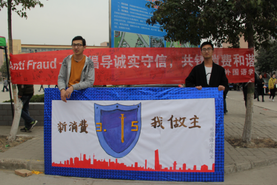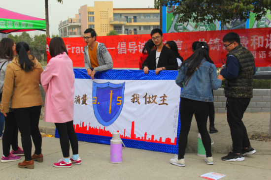 活动中,同学们积极参与,踊跃地在条幅上留下自己的名字。同时还就消费安全方面的问题进行宣传和交流。除此之外,公司各个班长、团支书也都在各个班级认真做了宣传活动,希望在如今科技发达、信息便捷的今天,不时发生的消费问题方面的新闻时事,能让我们更加清楚要加强维权意识,学会使用自己的权利。