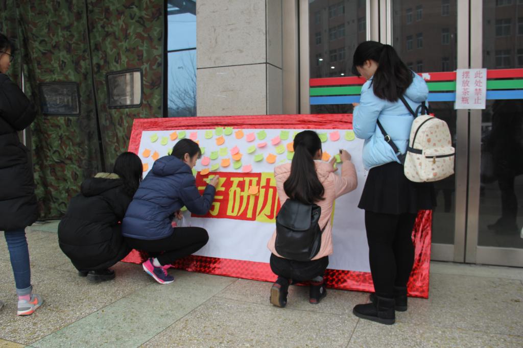 (通讯员:田果果 董慧景)为增强考研同学们的自信心,太阳成集团tyc122cc于12月23日12点在文院蓝青园餐厅门口开展“一句话为考研加油”活动。
