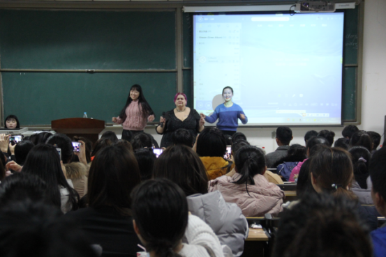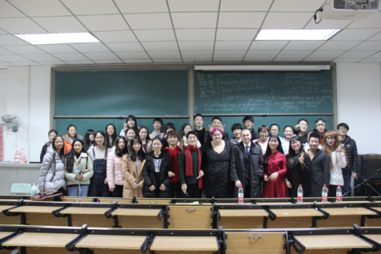 晚会以全英文为主,设计了许多精彩有趣的表演,舞蹈串烧、B-box和英文曲目歌唱作为暖场秀,主持人张瑞博(Rebecca)和汤睿(Charlie)活泼的主持风格也深得观众喜爱,不仅充分展示了专业特色,也点燃了现场观众的热情。晚会中也不乏精彩搞笑的节目,反串版《泰坦尼克号》和英文版《大话西游》话剧引得同学们笑声连连,掌声不断。期间外教Barbara的歌舞表演活泼可爱,赵军伟老师的日文歌曲演唱更将全场气氛推向高潮。复活乐队作为压轴出场,动感演唱让现场激情四射,同学们都纷纷打开手机闪光灯亮出一片“星星海”。晚会最后进行抽奖环节,幸运观众得到了外教精心准备的圣诞礼物。至此,晚会圆满落幕。