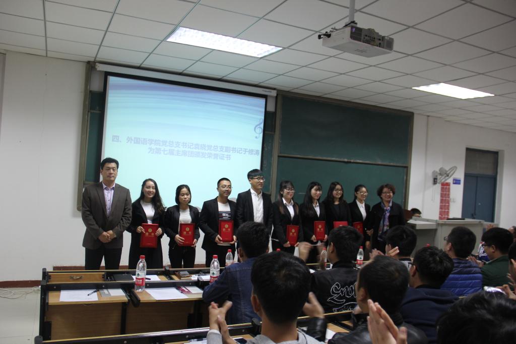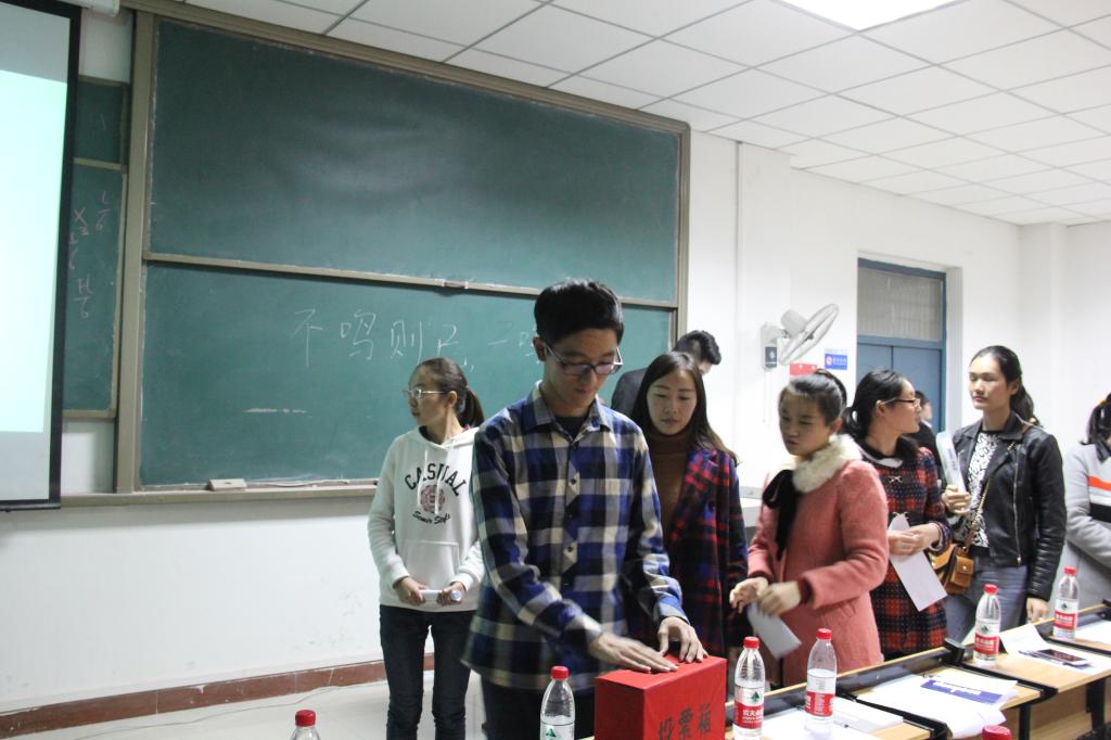预备会议开始,第一项,党总支副书记于修涛宣读本次大会代表资格审查报告;第二项,侯静雯老师宣读新一届主席团候选人资格审查报告;第三项,田果果老师宣读员工会主席团换届选举办法;第四项,张换成老师宣读总监票人、监票人、总计票人和计票人名单。正式大会开始,全体起立,奏国歌,随后,党总支书记袁晓致开幕词,接着,第七届员工会主席张媛媛做工作报告,期间还播放了员工会精心制作的纪录片。接下来,由党总支书记袁晓、副书记于修涛为第七届员工会主席团颁发聘书并合影留念。欢送嘉宾离场后,由新一届候选人做竞选演说,候选人发挥各自的优点做了精彩的演讲,演说完毕,各代表投票,在十分钟的计票和分组讨论之后,由田果果公布新一届员工会主席团名单。之后,第七届与第八届员工会主席团进行交接,并由新一届员工会主席门海月宣读倡议书。最后,于修涛致闭幕词,大会在领导老师及新老主席团的合影留念中圆满结束。