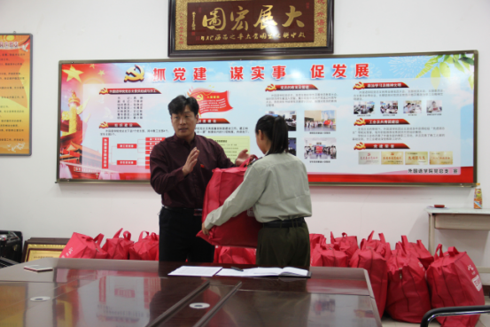 于修涛书记给员工发礼包