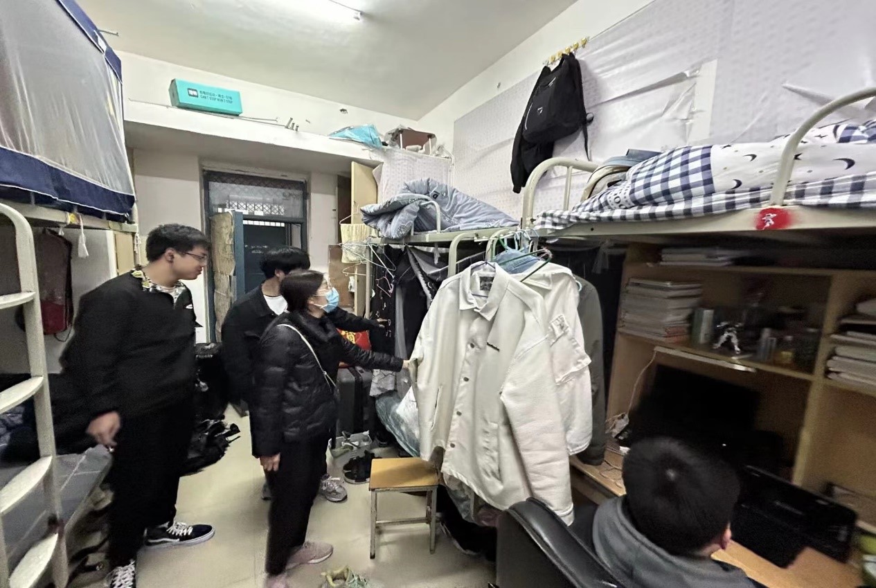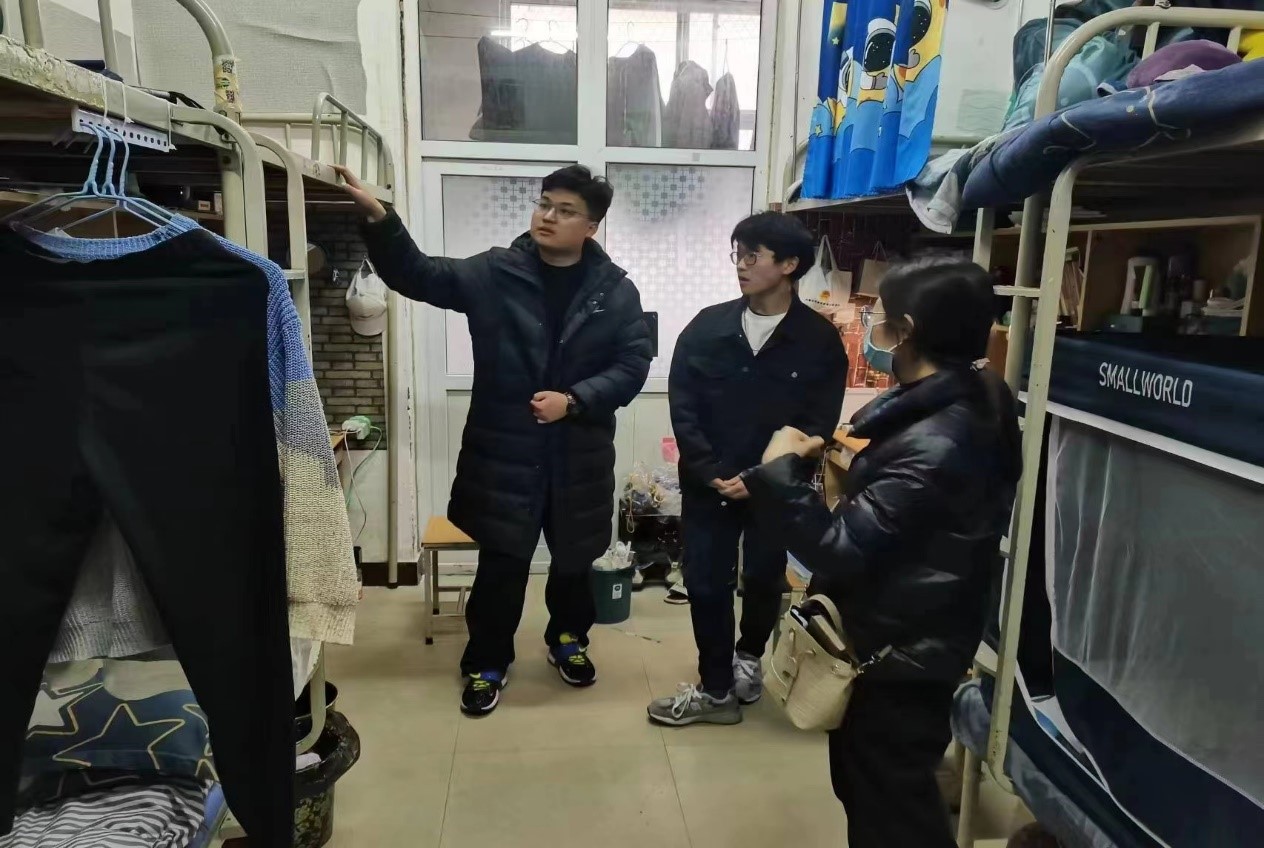 在此次的检查工作中,靳真真老师深入员工宿舍,围绕宿舍生活中的各类事项与同学们进行交流,了解同学们在宿舍中生活学习的情况。在检查过程中,靳真真仔细询问了宿舍电器设施的使用情况,提醒同学们在使用室内电器的过程中要注意用电安全,不要携带违禁物品。同时,靳真真对宿舍的床铺安全进行了检查,提醒同学们要注重宿舍卫生,做好宿舍的内务整理工作。最后,靳真真结合自己员工时代的生活经历,建议同学们合理安排日常作息时间,日常坚持进行锻炼,提高身体素质,鼓励同学们保持良好的宿舍生活习惯,营造良好的生活学习氛围。