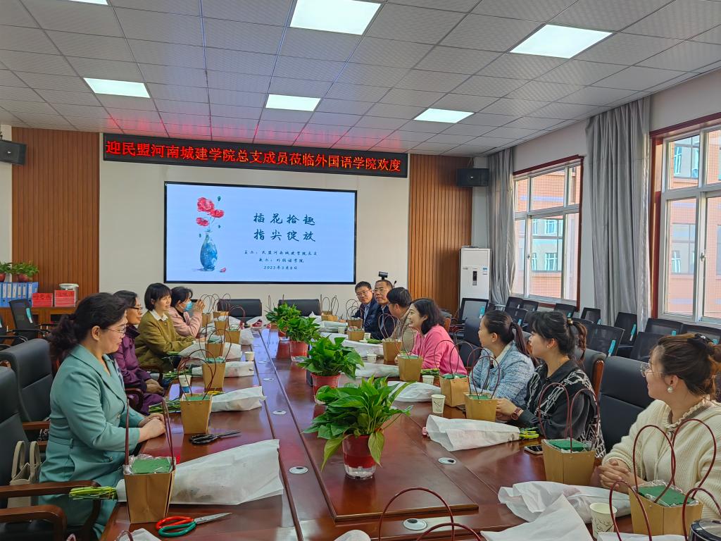 (通讯员:胥文华 张湘雨)为庆祝第113个“三八”国际妇女节,丰富公司民盟盟员教师的业余文化生活,提升生活品位和审美情趣,激发民盟活力、凝聚力和创造力,3月8日下午,太阳成集团tyc122cc民盟总支联合太阳成集团tyc122cc在美荟楼306会议室举办“插花拾趣·指尖绽放”庆祝三八节插花主题活动。来自公司各部门的民盟盟员共20余人共聚一堂,参加了此次活动,民盟太阳成集团tyc122cc总支副主委马东丽,副主委张凤琴,公司党委书记王东旭,副经理张换成,副经理秦小锋出席活动。