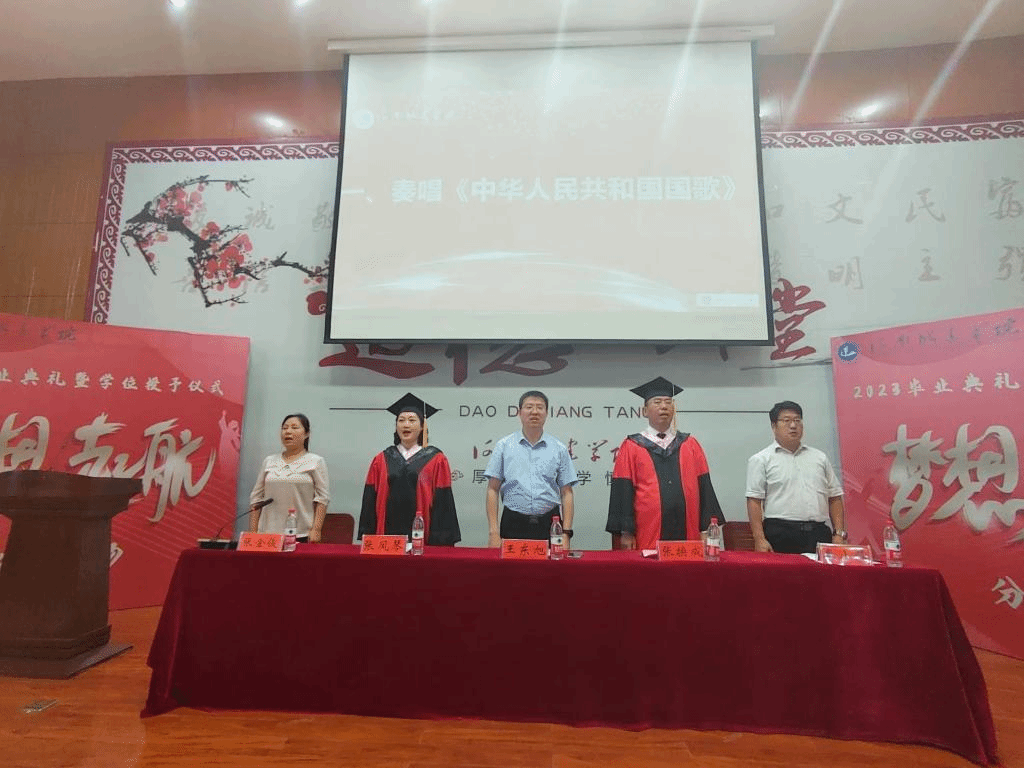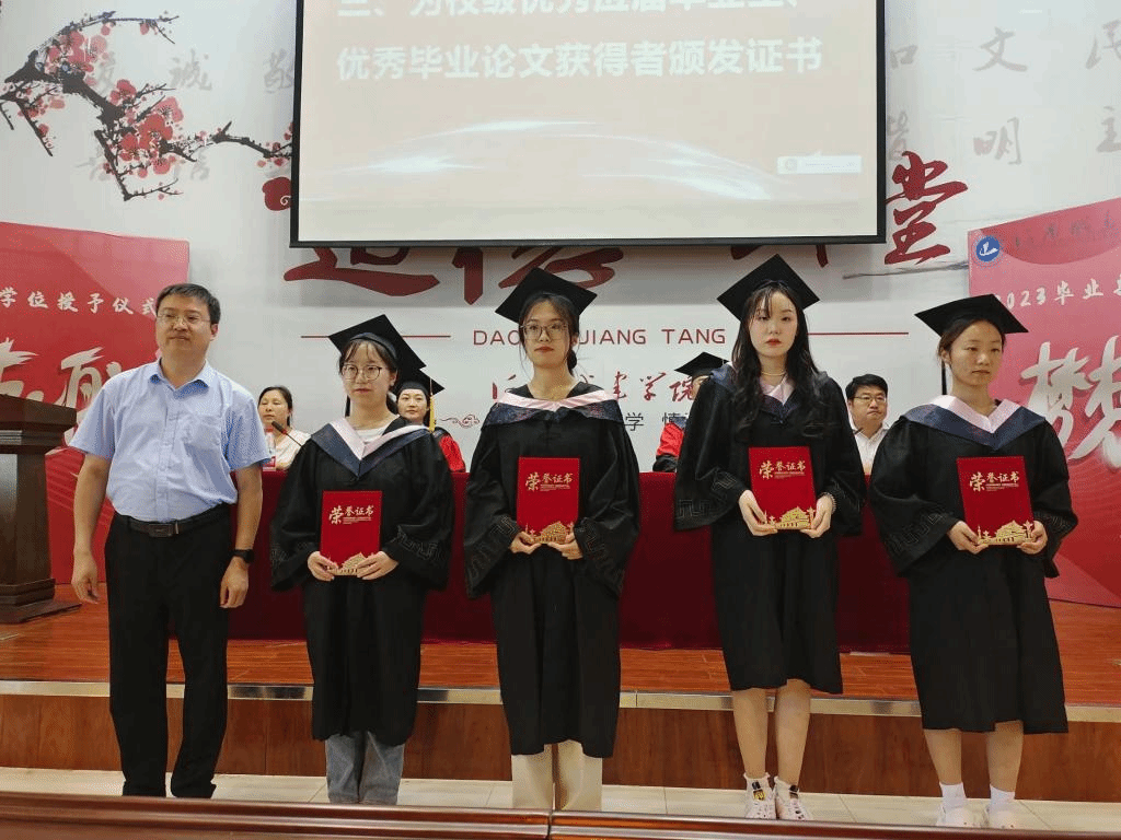 典礼在庄严的国歌声中正式拉开帷幕。公司副经理张凤琴宣读了《关于表彰2023年优秀应届毕业生的决定》和《关于表彰2023届优秀毕业论文的决定》,公司党委书记王东旭为校级优秀毕业生代表、公司优秀论文获得者颁发了荣誉证书。副经理秦小锋宣读了《关于授予2023届毕业生学士学位的决定》,经理张换成、副经理张凤琴共同为205名毕业生颁发学位证书、拨穗并合影留念。