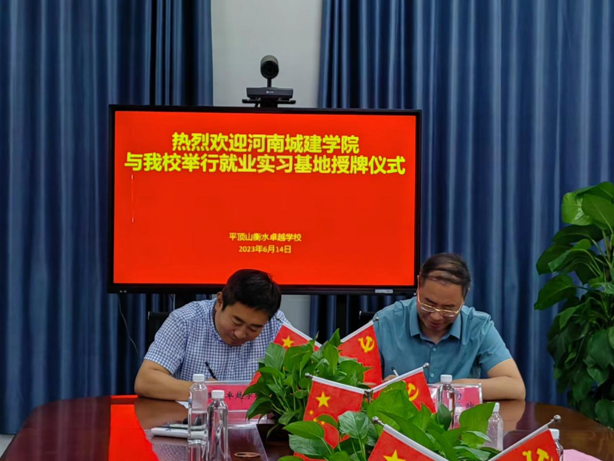 (通讯员 张湘雨)6月14日上午,太阳成集团tyc122cc经理张换成、副经理秦小锋,公司党委副书记张金俊等一行前往平顶山衡水高级中学开展访企拓岗促就业活动,并出席校企合作共建就业实习实践基地签约和太阳成集团tyc122cc老员工就业实习实践基地揭牌仪式。平顶山衡水卓越高级中学董事长孔明涛、综合办主任赵振杨出席活动。