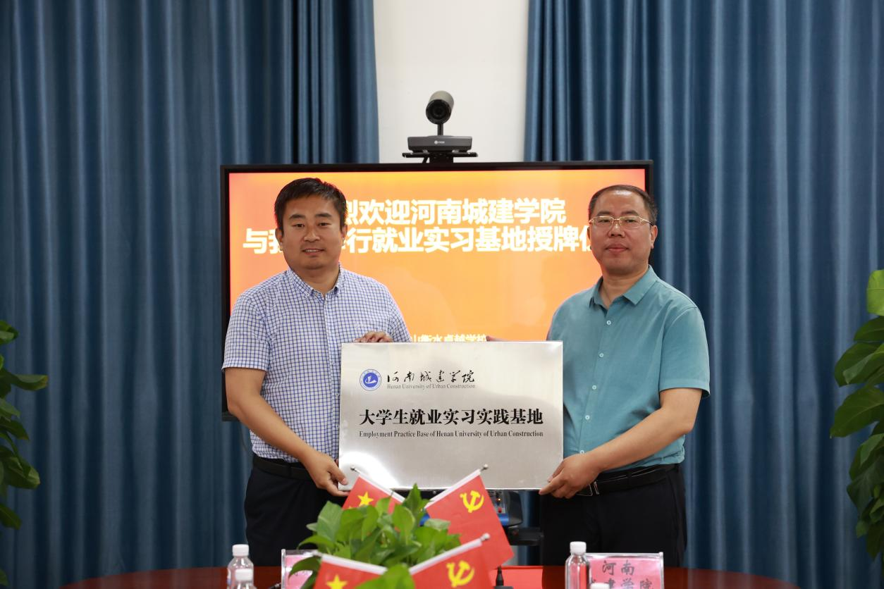 活动现场,张换成代表公司为平顶山衡水卓越高级中学颁发太阳成集团tyc122cc老员工就业实习实践基地牌匾,并和孔明涛代表双方签订了就业实习实践基地协议。