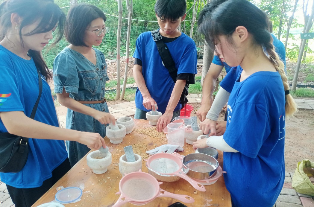 、(员工二支部党员在花山村研学基地体验农耕文化—捣蒜)