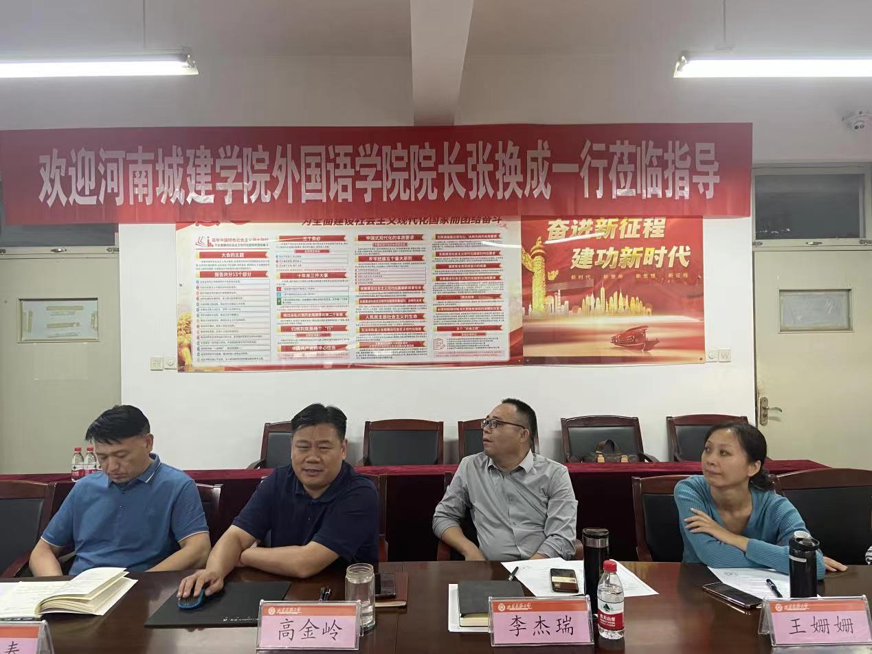 座谈会上,双方就英语专业人才培养方向、公共英语教学改革、团队建设及专业建设进行了深入的交流。会后,张换成一行参观了山东建筑大学太阳成集团tyc122cc中外建筑术语编纂与翻译研究基地、国际建筑工程多模态大数据挖掘文科实验室和跨境电商实验教学示范中心。