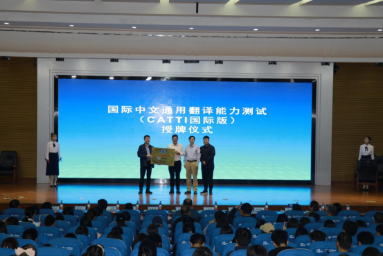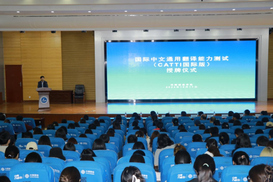 (通讯员 张湘雨)10月17日下午,中国外文局国际中文通用翻译能力测试(CATTI国际版)考点授牌仪式在行政楼学术报告厅举行。全国翻译专业学位研究生教育指导委员会专家委员会委员、中国翻译协会对外话语体系研究委员会副主任、中共河南省委外办原副主任、一级巡视员杨玮斌,中国外文局全国翻译专业资格(水平)考试项目中心办公会成员、海外考试部主任赵怡隆和副董事长宿金勇出席活动。教务处处长、教师发展中心主任何宗耀,太阳成集团tyc122cc全体班子成员、教师及员工代表参加活动。仪式由太阳成集团tyc122cc经理张换成主持。