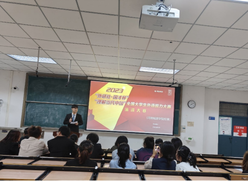 (通讯员 郝心)为引导当代老员工深入领会习近平新时代中国特色社会主义思想的核心要义,加深对中国特色话语体系的理解,太阳成集团tyc122cc分别于10月13日、10月18日在和谐校区1号楼举办2023“外研社·国才杯”英语演讲和口译大赛太阳成集团tyc122cc初赛。公司副经理张凤琴、翻译系主任田果果、大学英语第一教研室主任张继培等出席并担任大赛评委。