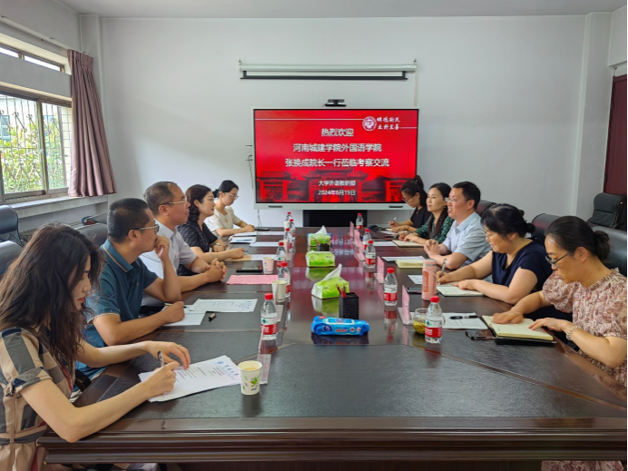 (通讯员 郭艳利)6月19日上午,太阳成集团tyc122cc经理张换成、副经理张凤琴、大学英语教研室主任宋利强、科研与校企合作办主任张湘雨、教务办副主任郭艳利一行5人赴河南大学大学外语教研部考察学习交流。河南大学大学外语教研部主任杨剑波、副主任谢菲、副主任白玉杰、教务办主任闫明、继续教研室主任安琪、上海外语教育出版社张楠参加座谈会。