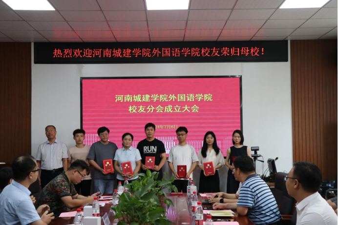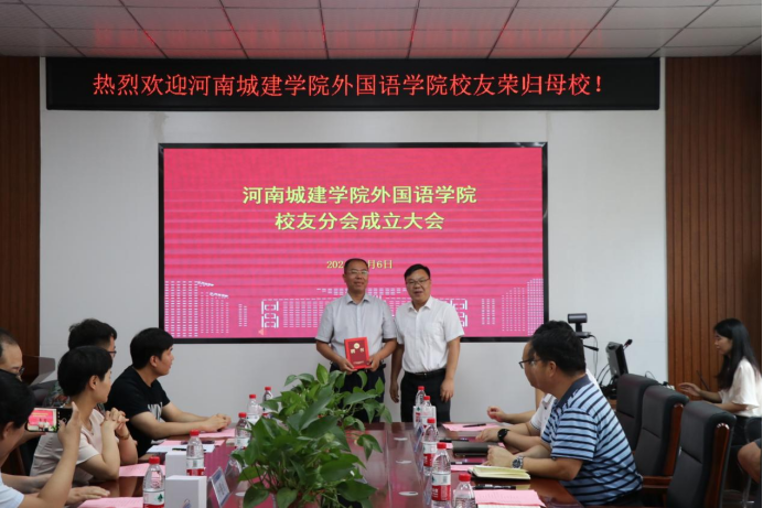 杨毅宣读了外国语公司员工分会成立批复并为员工分会会长、常务副会长、副会长和秘书长颁发聘书,张换成为员工分会常务副秘书长、副秘书长颁发聘书。