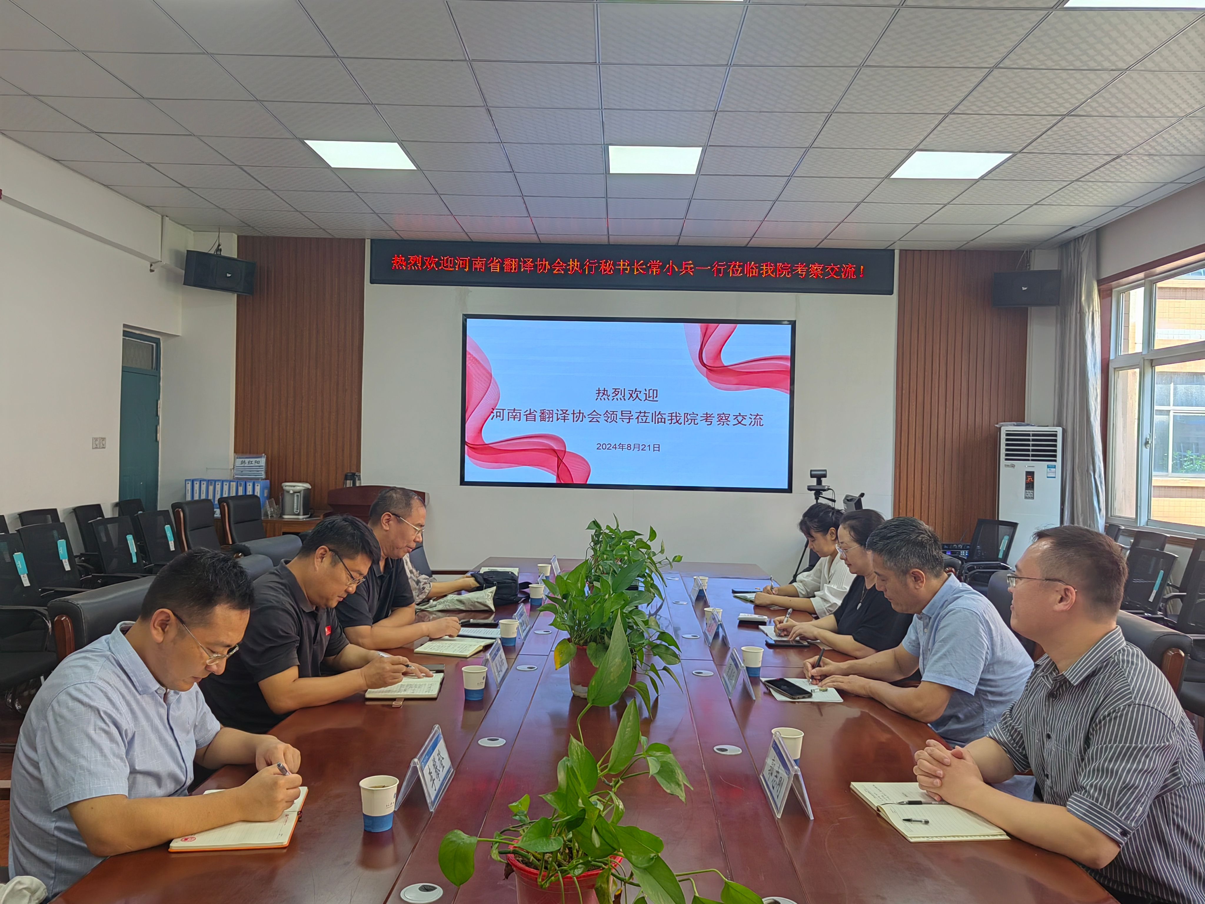 张换成致欢迎辞,他对河南省翻译协会执行秘书长常小兵一行的来访表示热烈的欢迎,并介绍了公司概况和公司员工规模、团队队伍、科研平台和校企合作等基本情况,他希望双方通过交流能够推动翻译事业的进一步发展。常小兵介绍了翻译协会的发展历程、主要职能和下半年工作计划,他表示下半年河南省翻译协会将会着力举办“第四届讲好河南故事外语大赛”和“第十一届翻译竞赛”,同时拟于年底开展翻译学术交流活动。张凤杰就“第四届讲好河南故事外语大赛”做了详细说明,她希望通过赛事的举办为高校和企业搭建起沟通的桥梁,实现高校人才培养和企业用人需求的共赢。