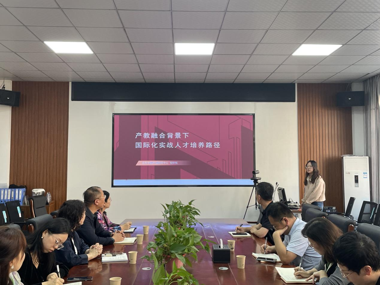 会上,张凤琴首先代表公司对王蒙蒙一行表示热烈欢迎,并介绍了与会人员。随后,张忻悦以“产教融合背景下国际化实战人才培养路径”为主题,详细阐述了有关高等教育政策和高校外语专业建设现状,提出了针对性的国际化人才培养解决方案,并分享了相关案例。