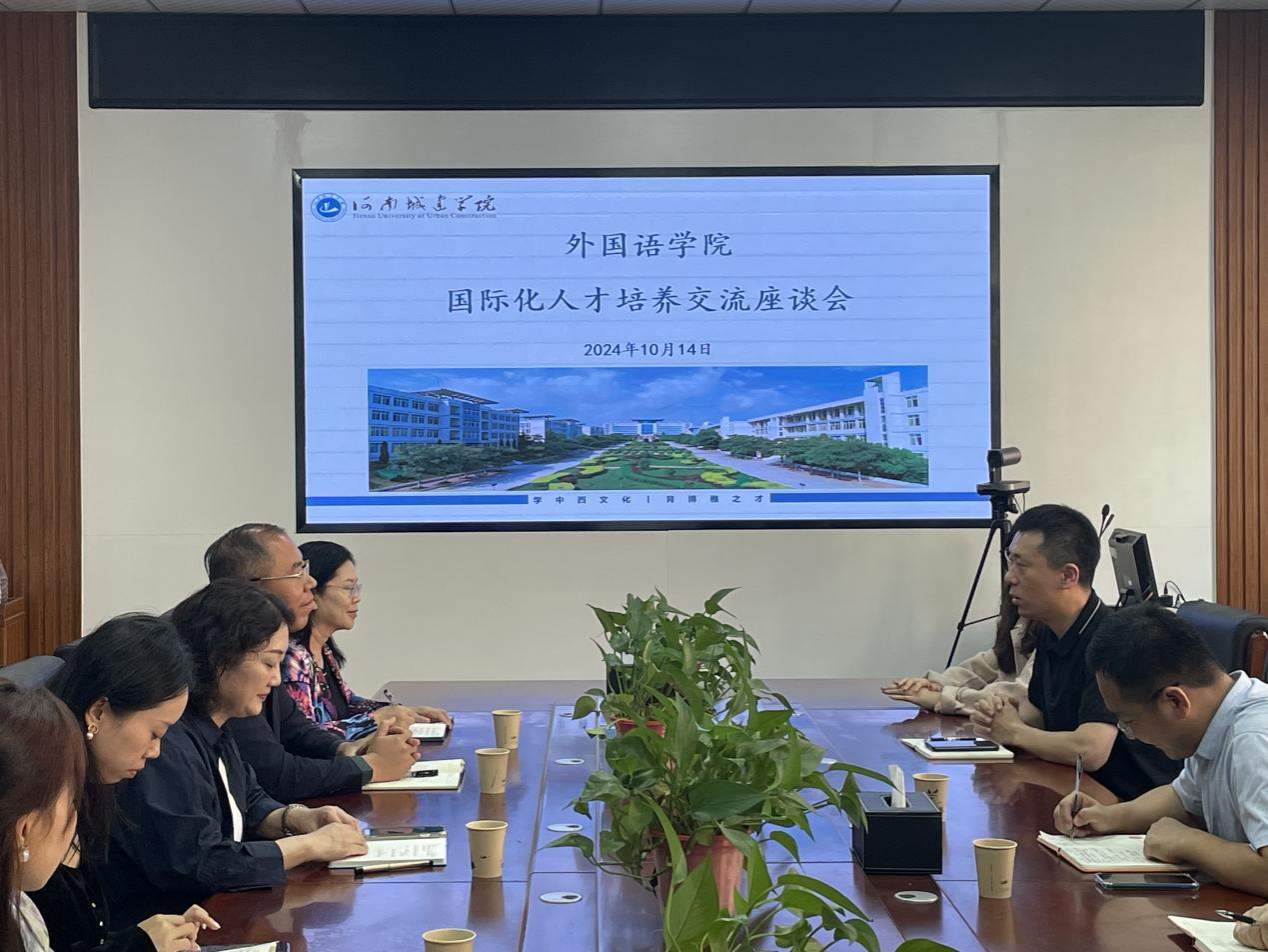 10月14日下午,中国外语测评中心河南工作组负责人王蒙蒙、张忻悦到访公司,参加国际化人才培养交流座谈会。公司党委书记王宏、经理张换成、副经理张凤琴、英语系主任张雨梦、翻译系主任李攀登、教务办主任郭艳利以及张香宇等八名骨干教师代表参加交流。会议由张凤琴主持。