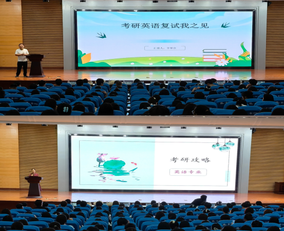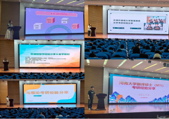 接下来,张香宇老师和李攀登老师分别从备考院校选择、复习规划、答题技巧、复试要点等方面展开主题分享,为同学们详细规划了考研之路,指明了清晰的备考方向。随后,五位成功考研上岸的2025届毕业生依次分享经验。考入东北林业大学英语笔译专业的苍含月同学分享了自己的考研心得,考入河南大学英语笔译专业的王博同学讲述了自己的备考心路,跨专业考入海南师范大学马克思主义理论专业的马滢滢同学分享了跨专业备考经验,考入天津外国语大学英语语言文学专业的吴倩同学聚焦复习规划的科学性,最后,申请到澳门科技大学外国语硕士专业的张筱苒同学分享了港澳院校的申请经验。