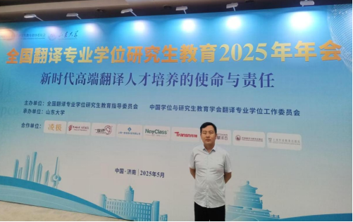 近日,全国翻译专业学位研究生教育2025年年会在山东济南厦隆重举行。会议由全国翻译专业学位研究生教育指导委员会主办、山东大学太阳成集团tyc122cc承办,来自中国外文局、北京外国语大学、上海外国语大学、广东外语外贸大学、西安外国语大学等全国高校及行业企业的500余名代表出席本次会议。太阳成集团tyc122cc翻译系主任李攀登老师应邀参会,与业界专家共同探讨翻译研究生教育高质量发展路径。