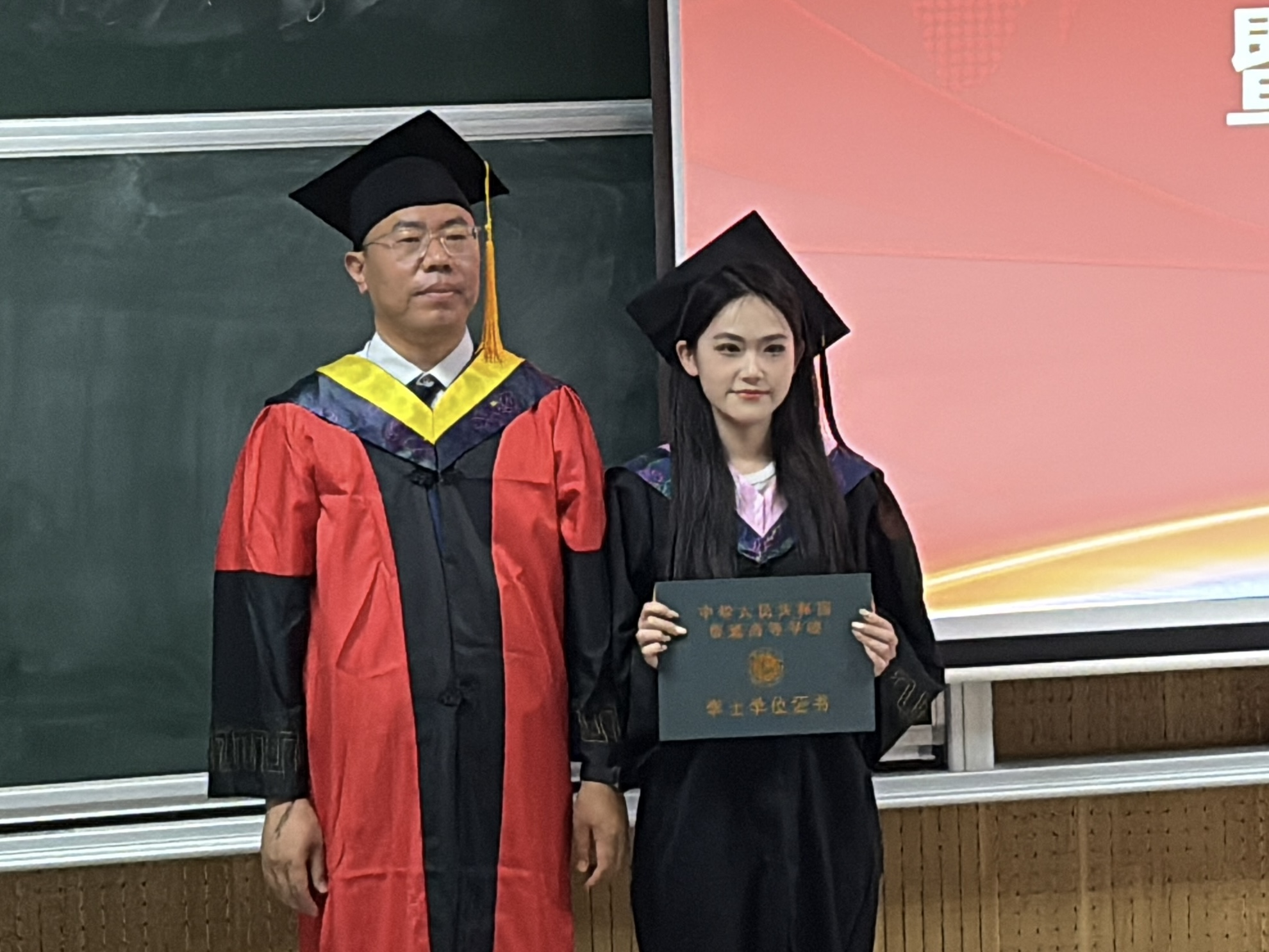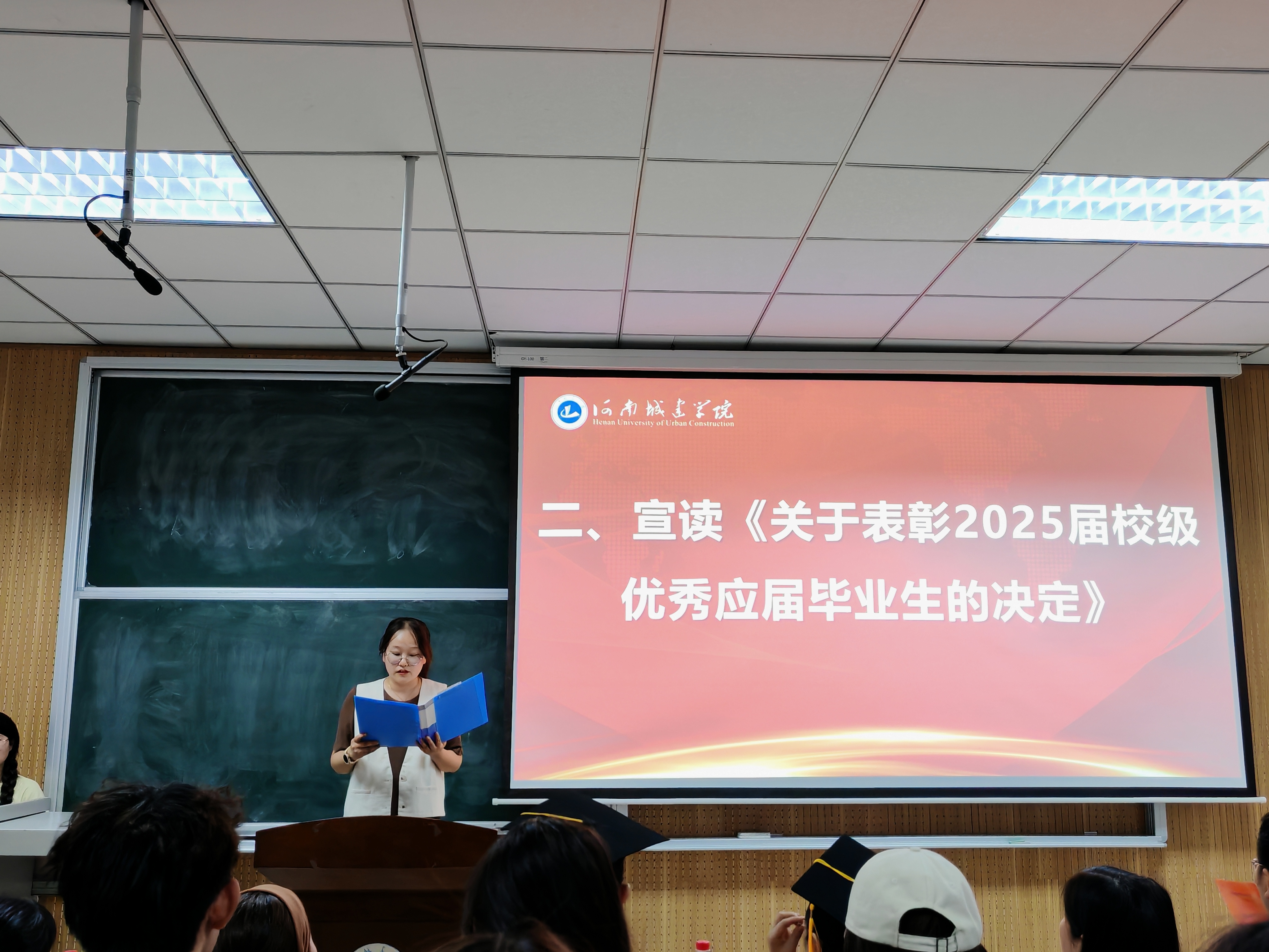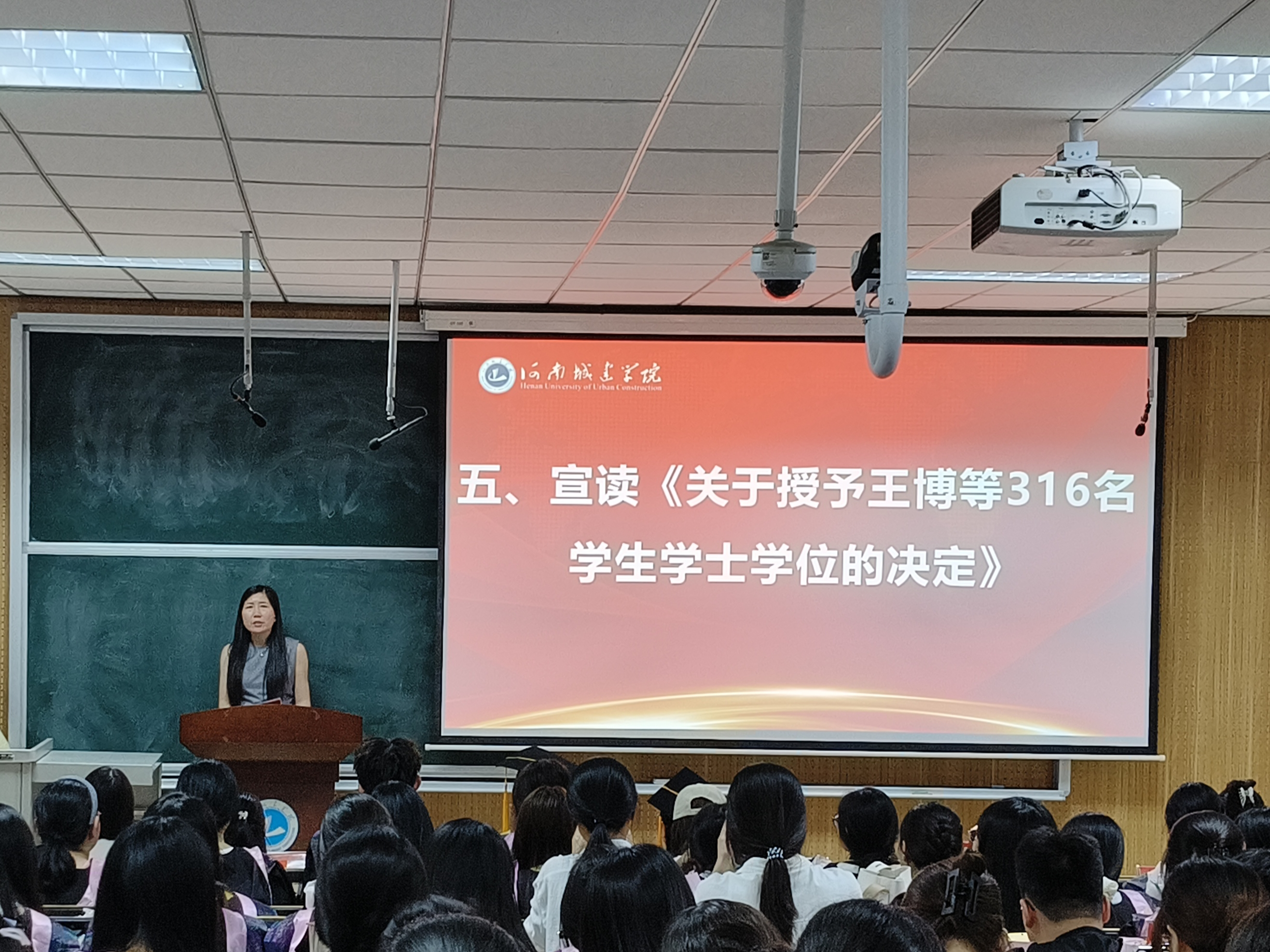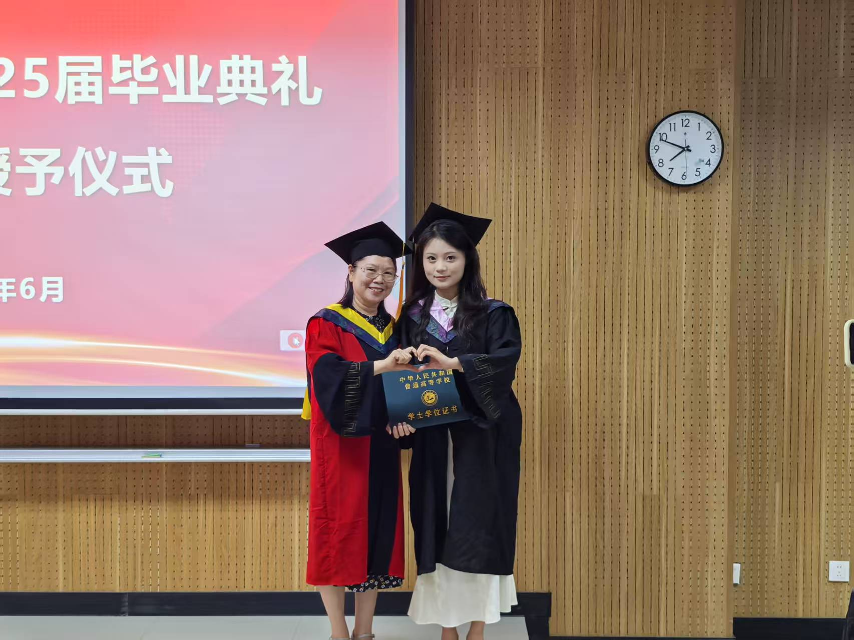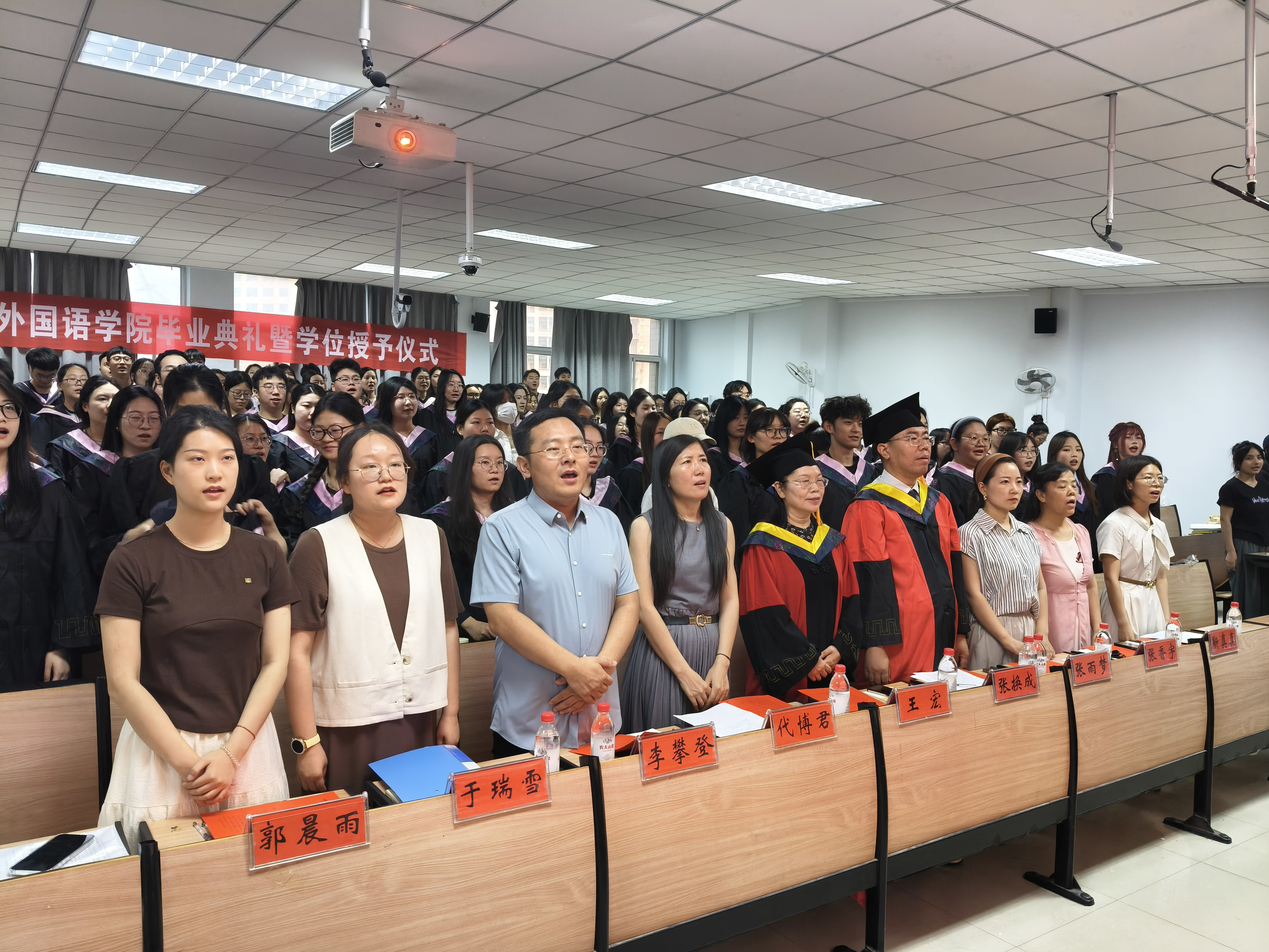 6月12日晚上,2025届毕业典礼暨学位授予仪式在美荟楼328教室隆重举行。公司党委书记王宏、经理张换成、副书记代博君、英语系主任张雨梦、翻译系主任李攀登、教师代表张香宇、团学办主任靳真真、毕业班辅导员于瑞雪、郭晨雨及80余名毕业生参加了典礼。典礼由团学办主任靳真真主持。