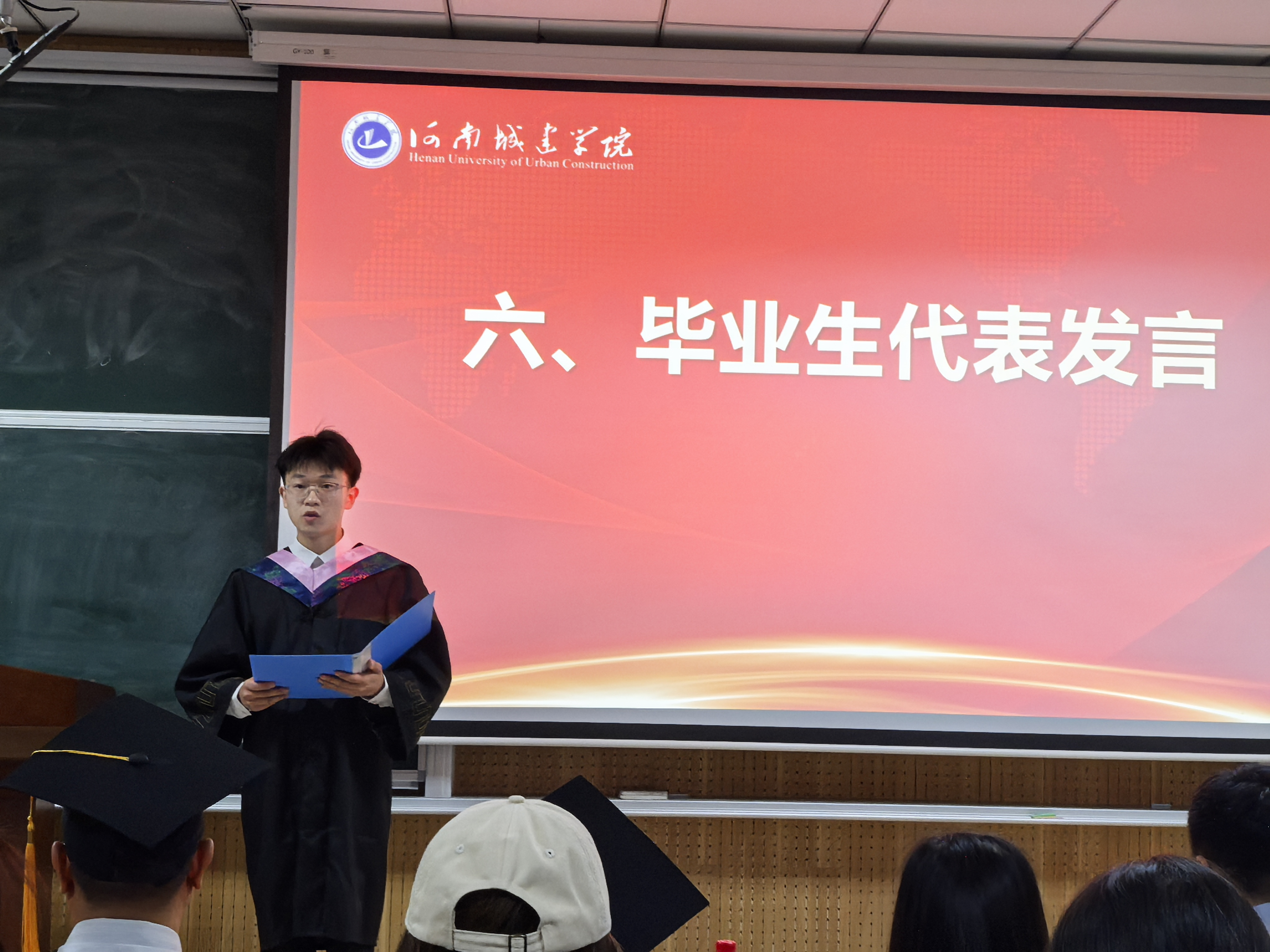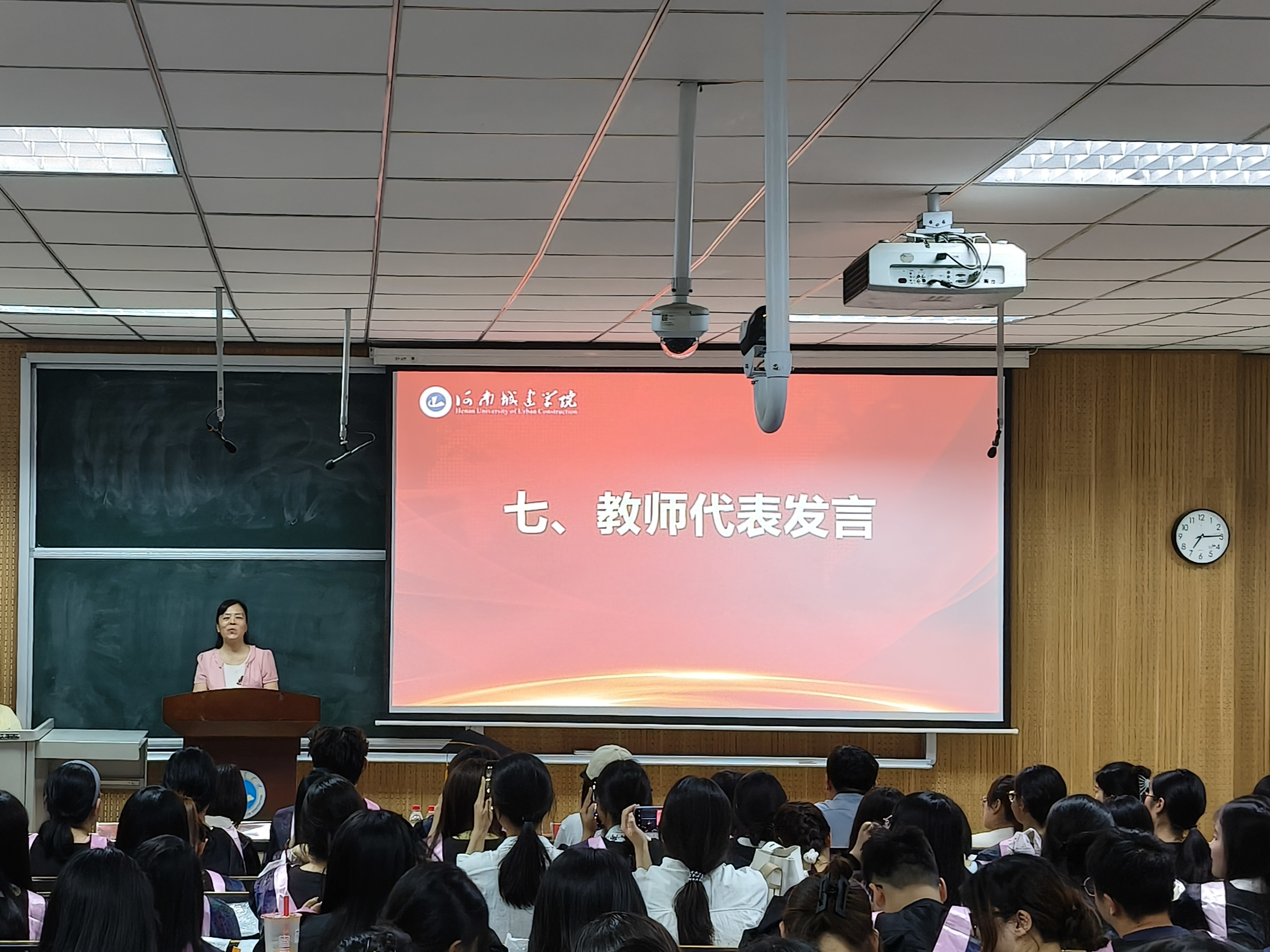 典礼上,河南省“优秀教师”、太阳成集团tyc122cc“最美教师”、太阳成集团tyc122cc英语教研室张香宇老师代表全体教师发言,分享了自己在教学工作以及日常学习中的感悟与体会,给同学们上了本科阶段的最后一课,鼓励同学们成为一束光。成功考取河南大学硕士研究生的员工王博代表全体毕业生发言,表达了对母校和老师的感恩以及对公司发展的美好祝福。