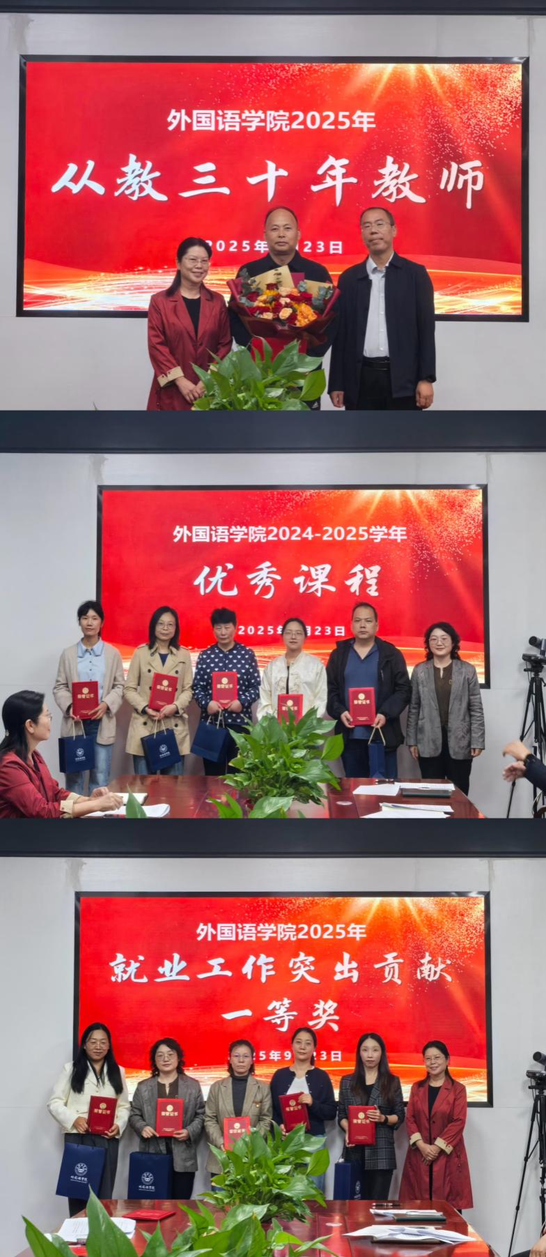 宣读完毕后,院领导依次为各类奖项获奖教师颁发荣誉证书和奖品并合影留念。